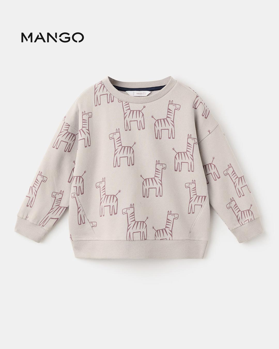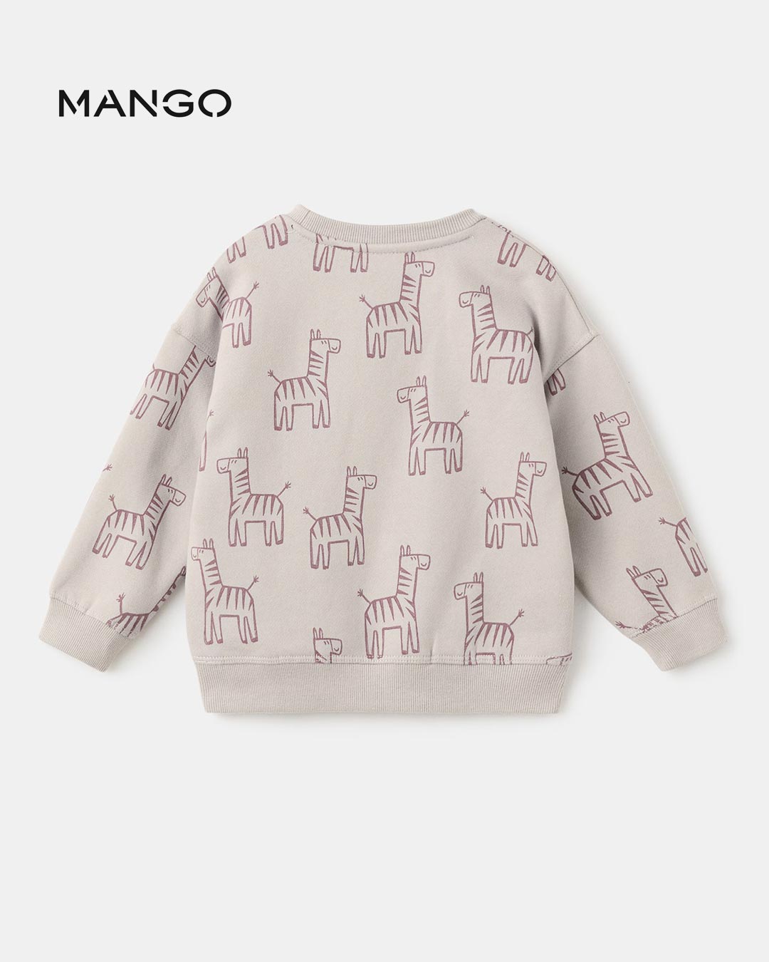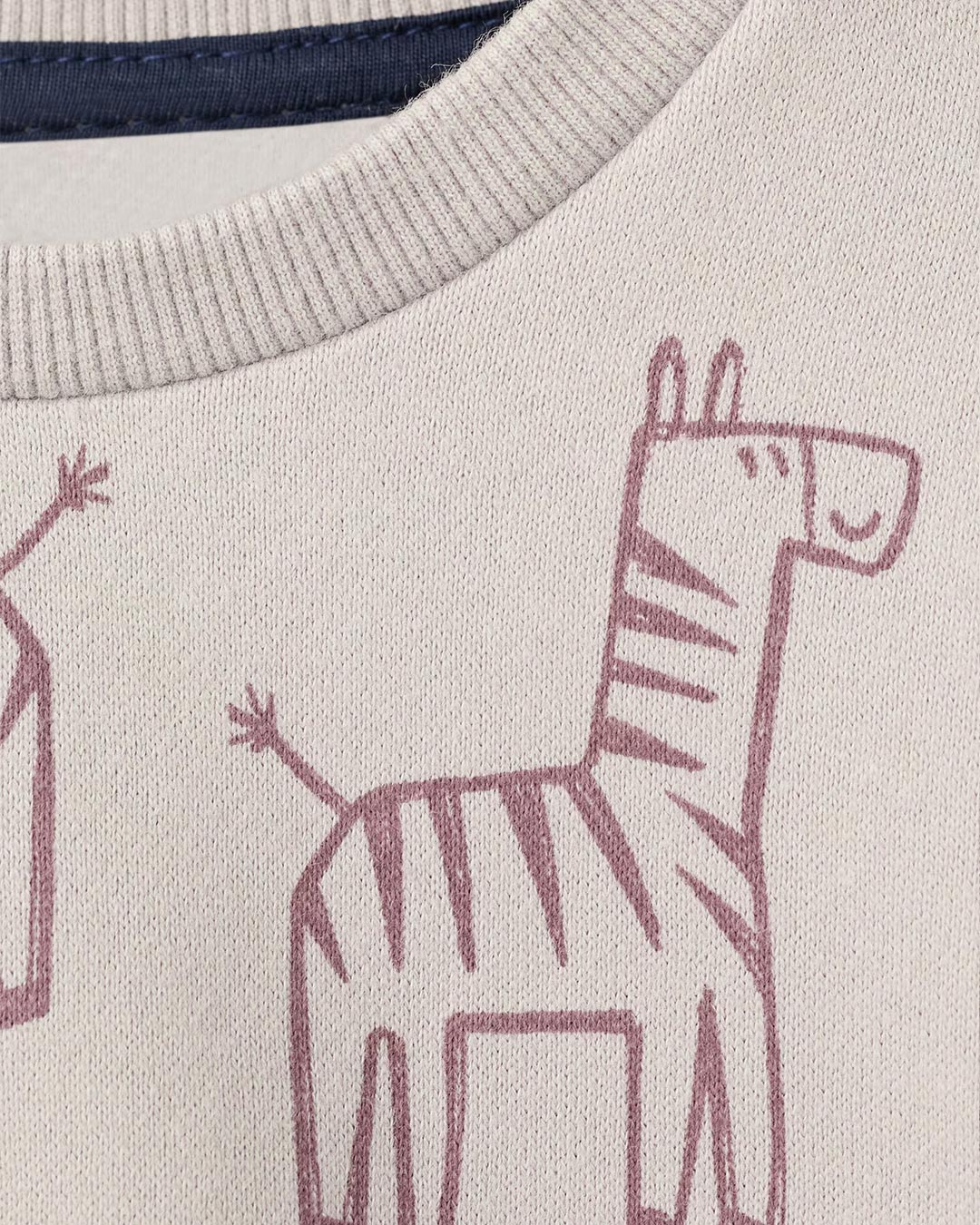 Cotton fabric. Printed design. Giraffe print. Round neck. Long sleeves. Ribbed neck, cuffs and hem. Total look.