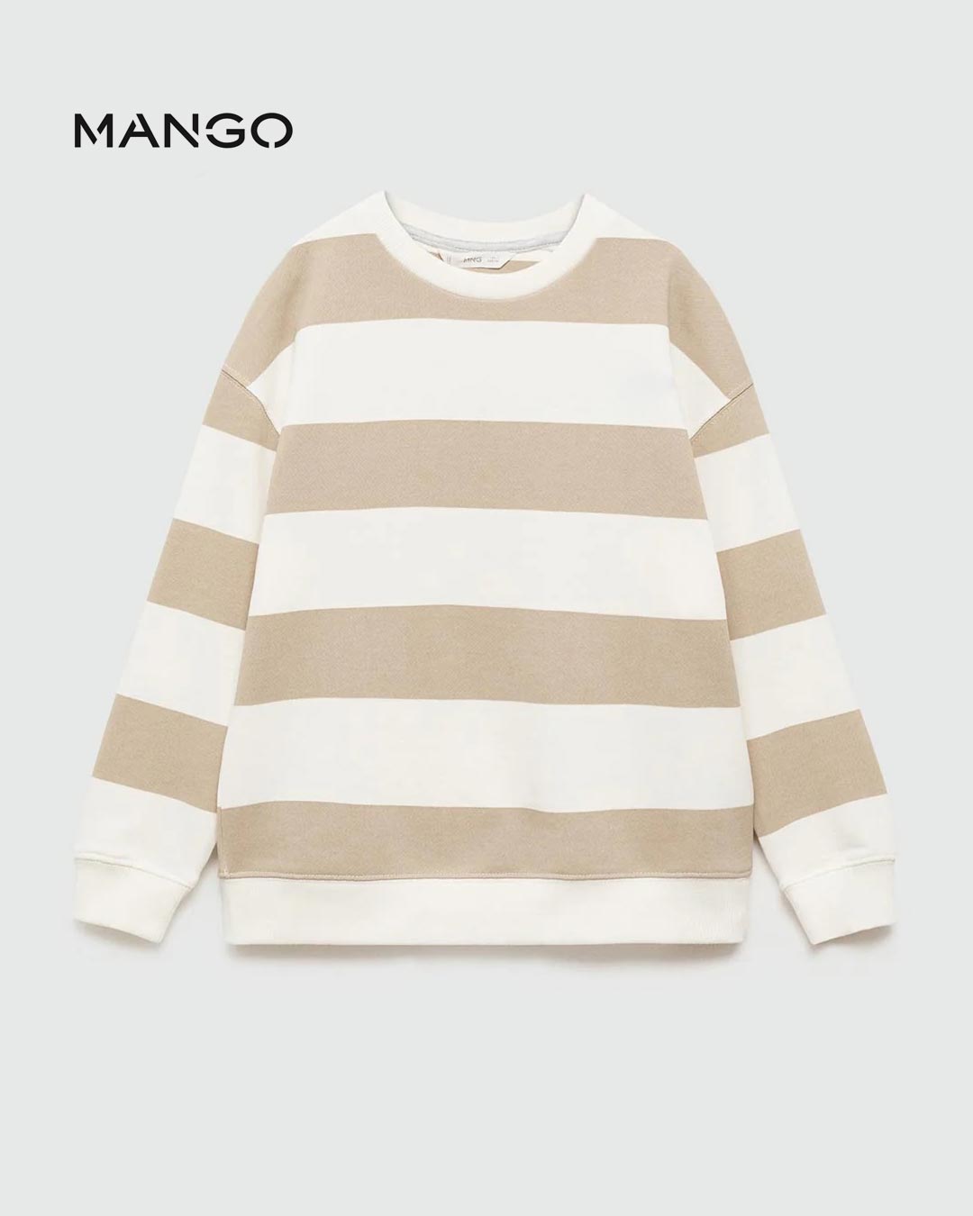 100% Cotton. Stripe design. Straight design. Round neck. Long Sleeve. Ribbed collar, cuffs and hem.