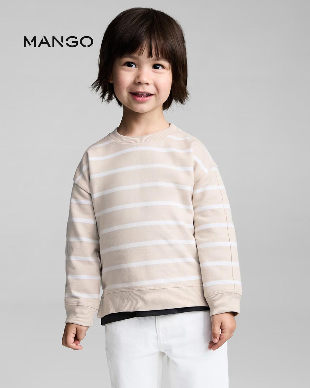 100% Cotton. Stripe design. Straight design. Round neck. Long Sleeve. Ribbed collar, cuffs and hem.