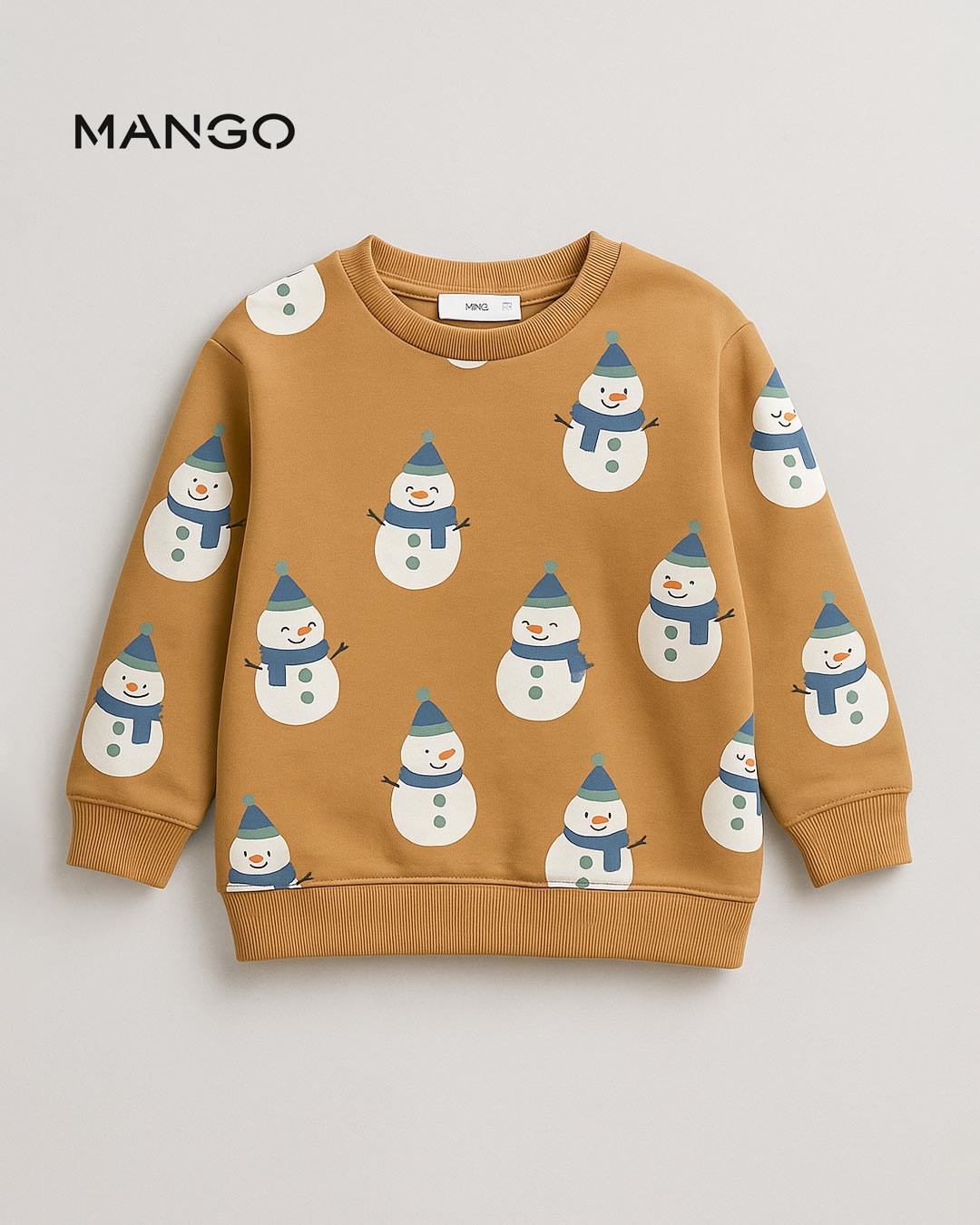 Add a touch of winter charm to your little one’s wardrobe with this adorable snowman print sweatshirt. Crafted from soft, cozy fabric, it keeps kids warm and comfortable during chilly days. The playful all-over snowman design paired with a rich brown base makes it both fun and stylish. Finished with ribbed neckline, cuffs, and hem for a snug fit, this sweatshirt is perfect for everyday wear, outings, or winter layering.
