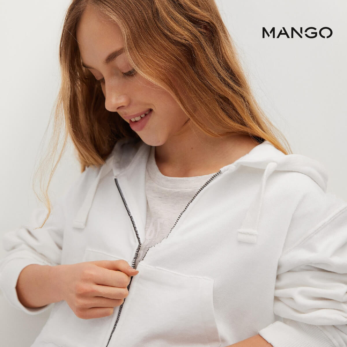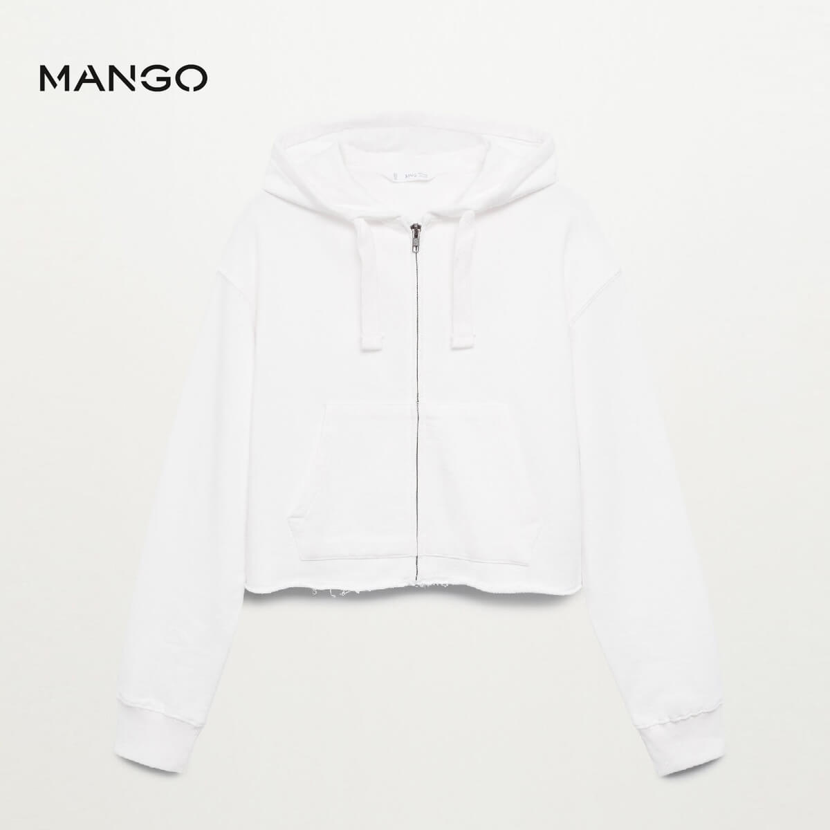 MANGO WHITE ZIPPED CROPPED HOODIE