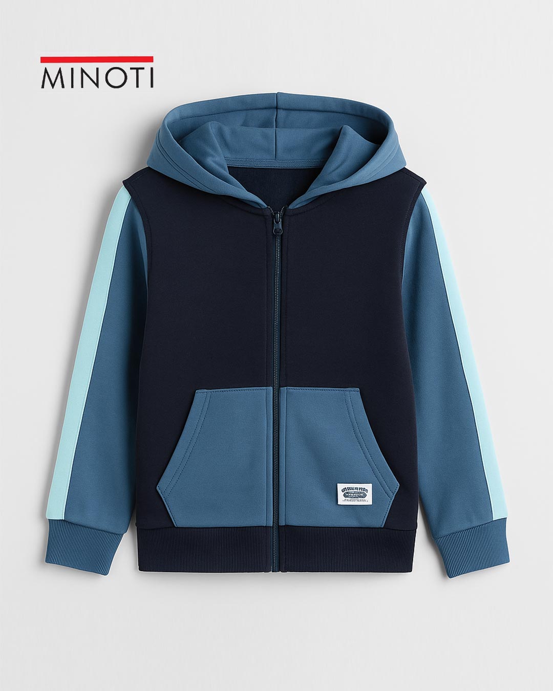 MINOTI BLUE COLOR BLOCK FLEECE ZIP HOOD WITH TROUSER SET