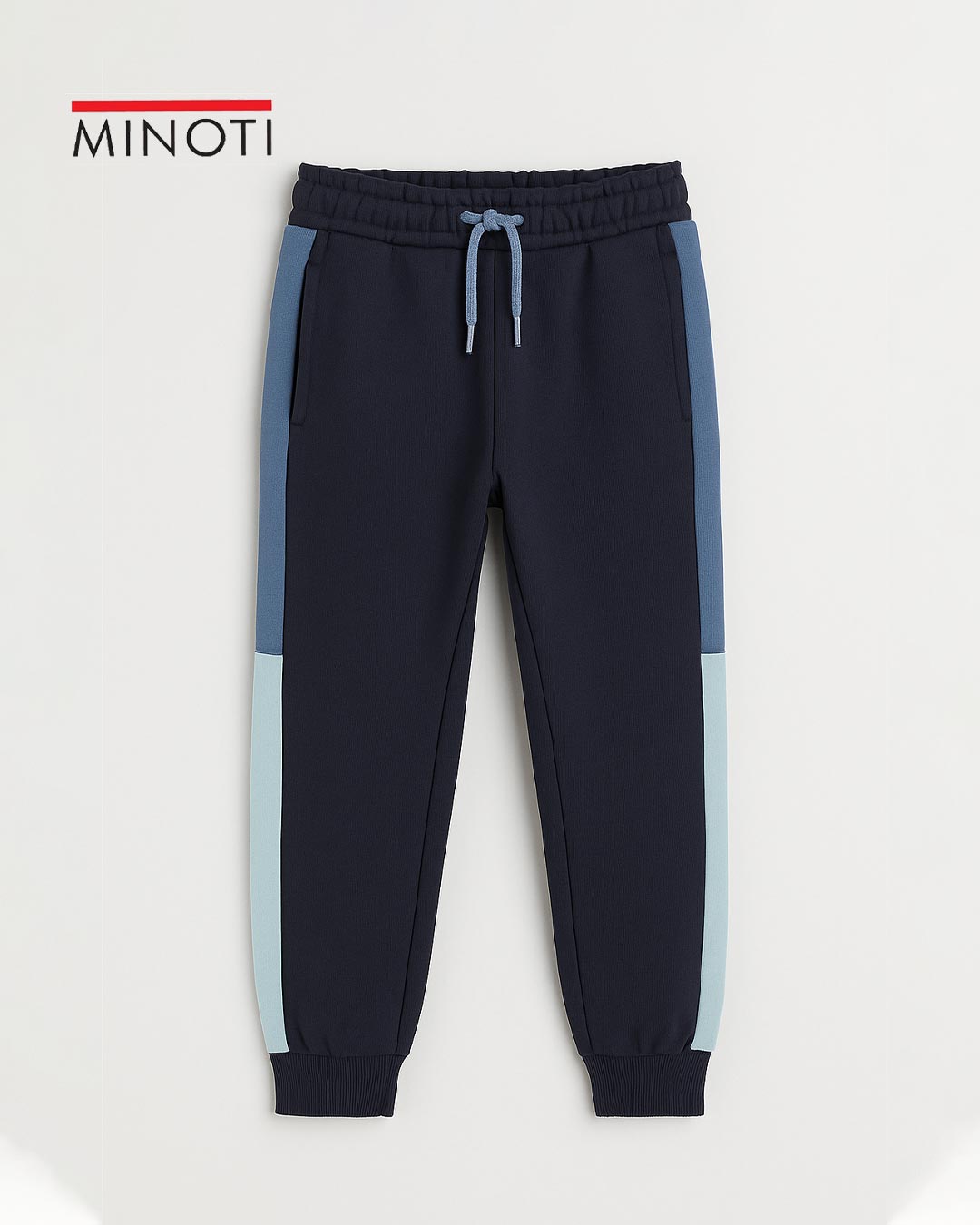 Trousers: Elasticated waistband with adjustable drawstring, ribbed ankles, and matching side panels for a coordinated outfit.