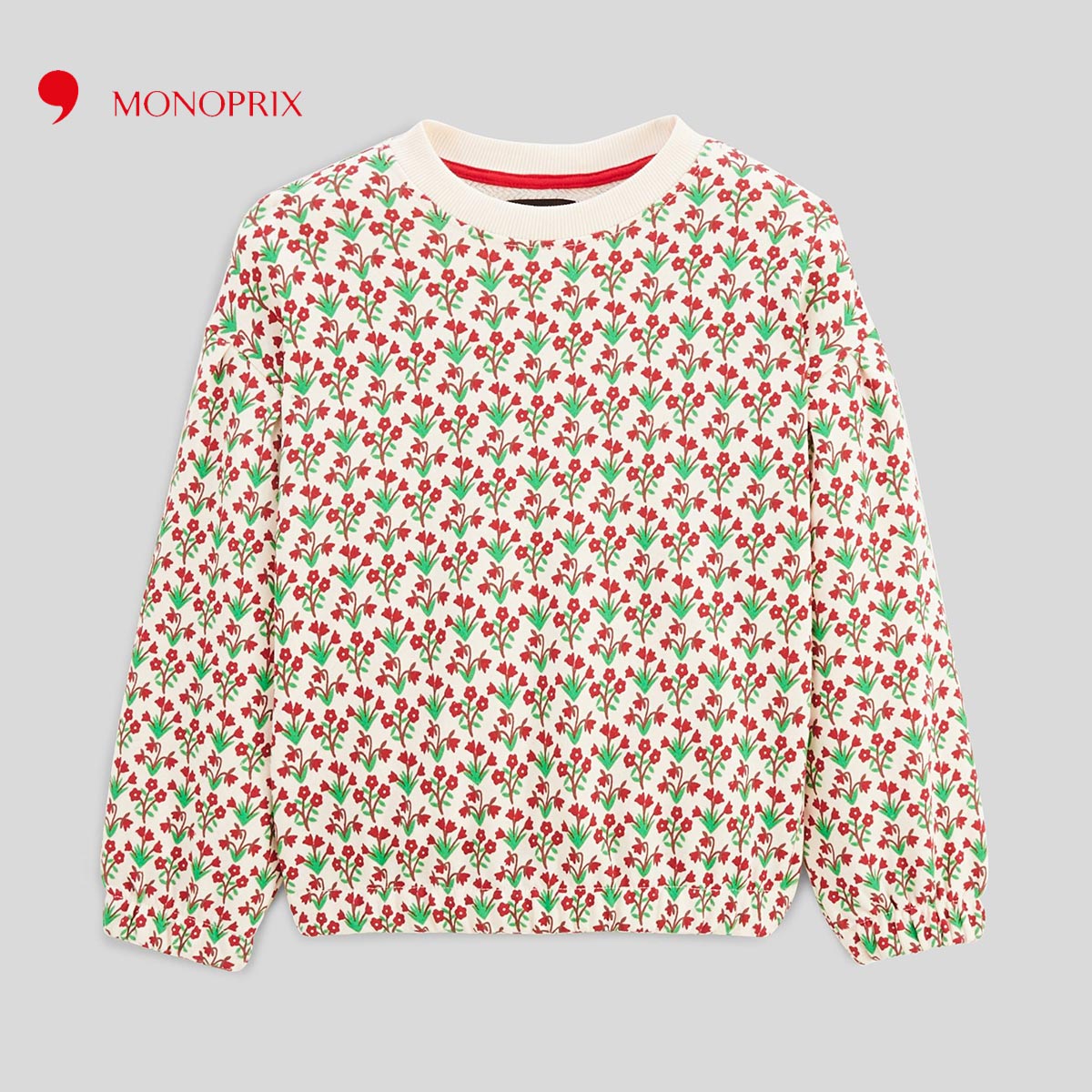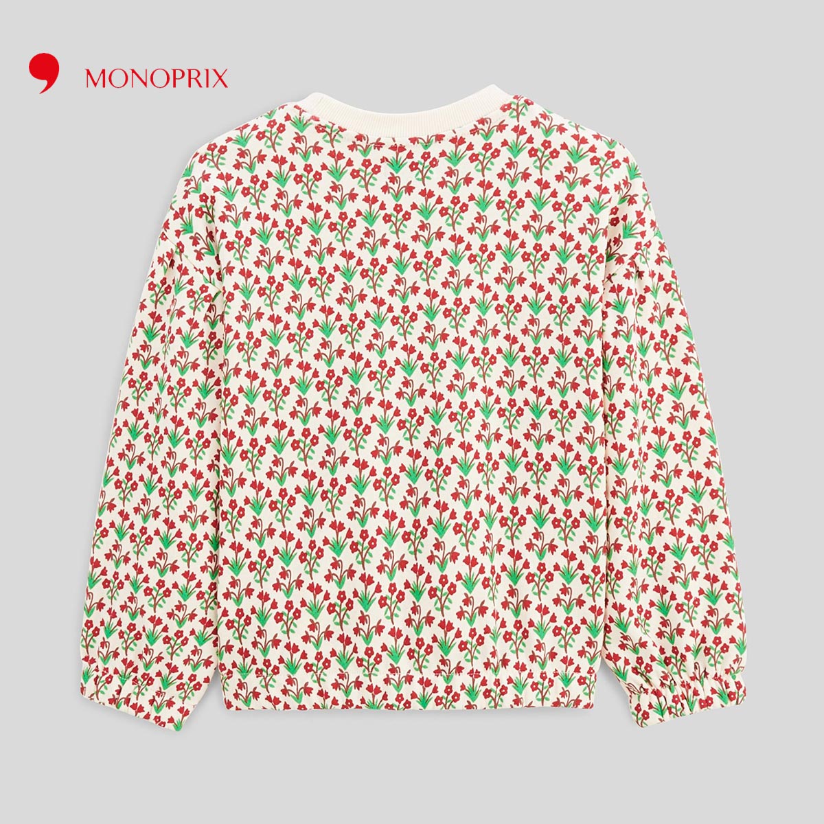 Flower print sweatshirt, GOTS certified Straight cut Round ribbed collar Soft and warm knit Elasticated sleeve and bottom hem GOTS: This product is made from organic cotton certified by the main standard in this field, the Global Organic Textile Standard. Grown without GMOs, pesticides or toxic phytosanitary products, organic cotton cultivation requires less water than conventional cotton. The model is 1m32 tall and wears a size 8 years. Model number: T31650326