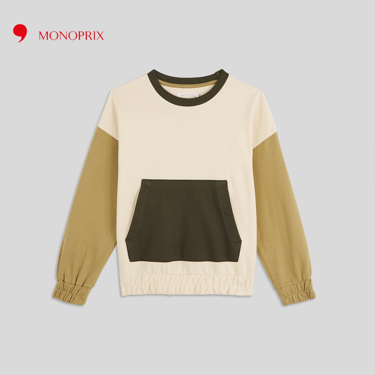 MONOPRIX BEIGE TRICOLOR BELLEY POCKET SWEATSHIRT