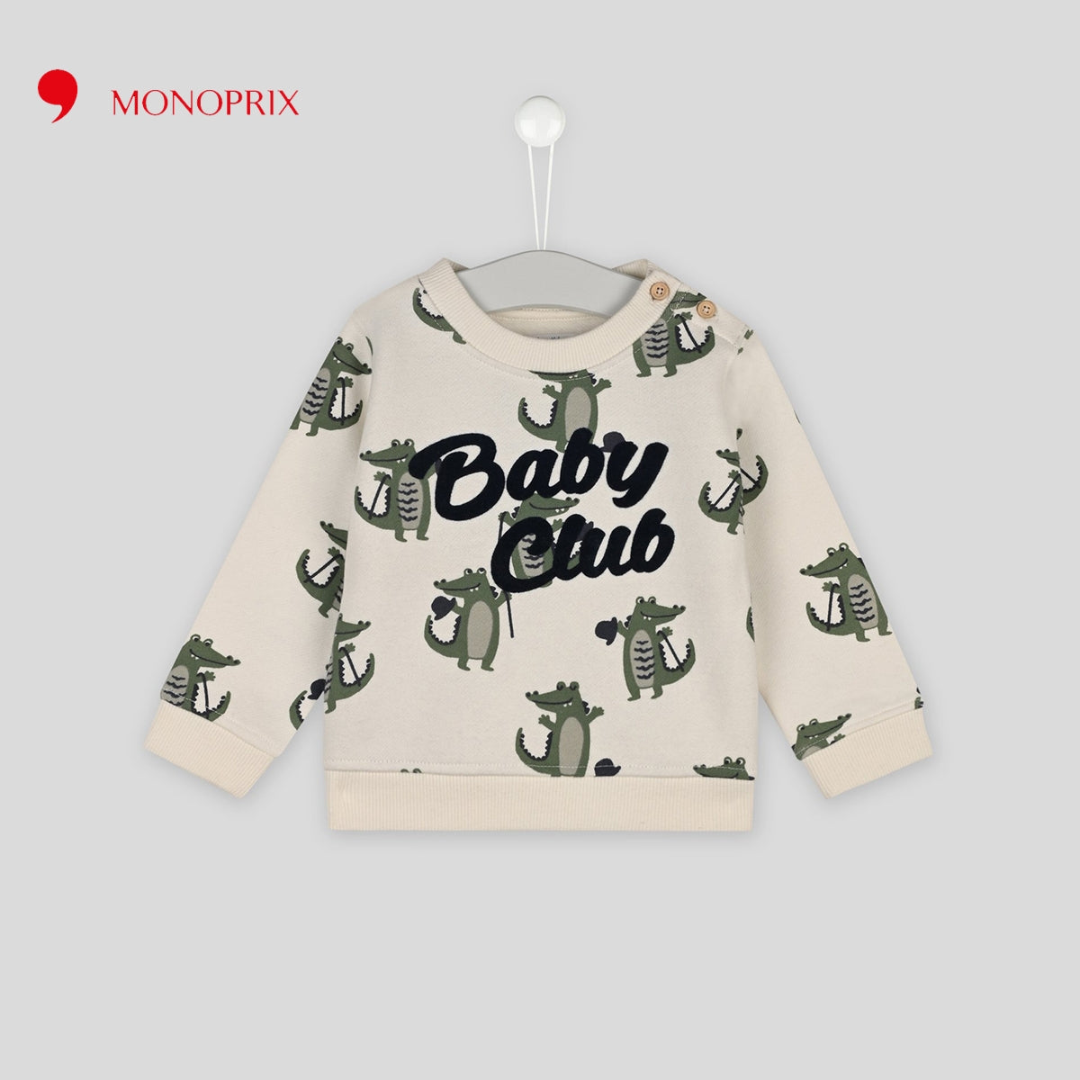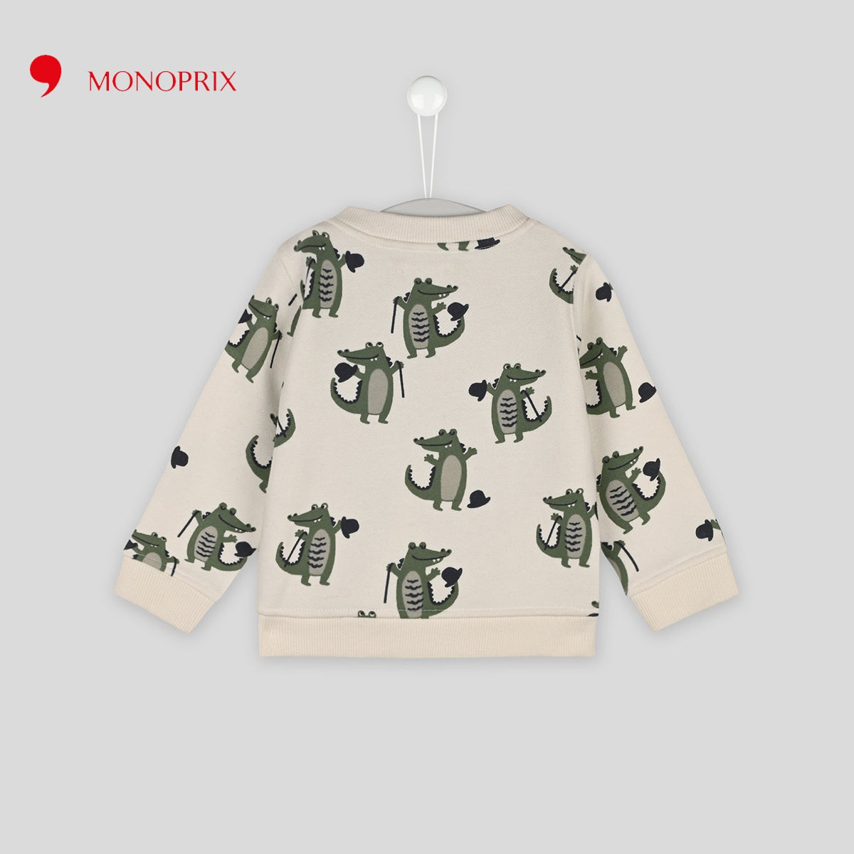 MONOPRIX ECRU CROCODILE MOTIF PRINTED COTTON SWEATSHIRT