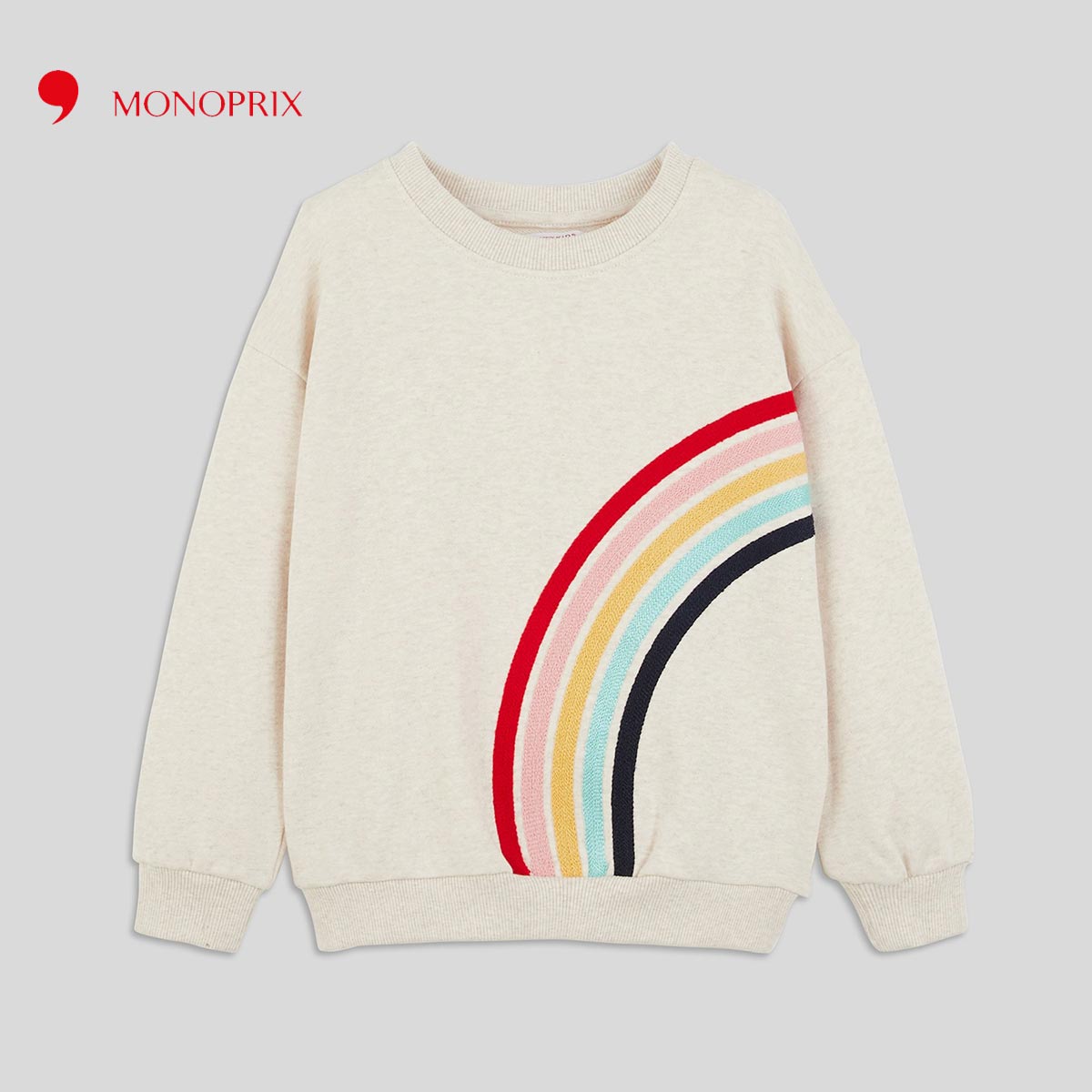 MONOPRIX ECRU EMBROIDERED RAINBOW SWEATSHIRT