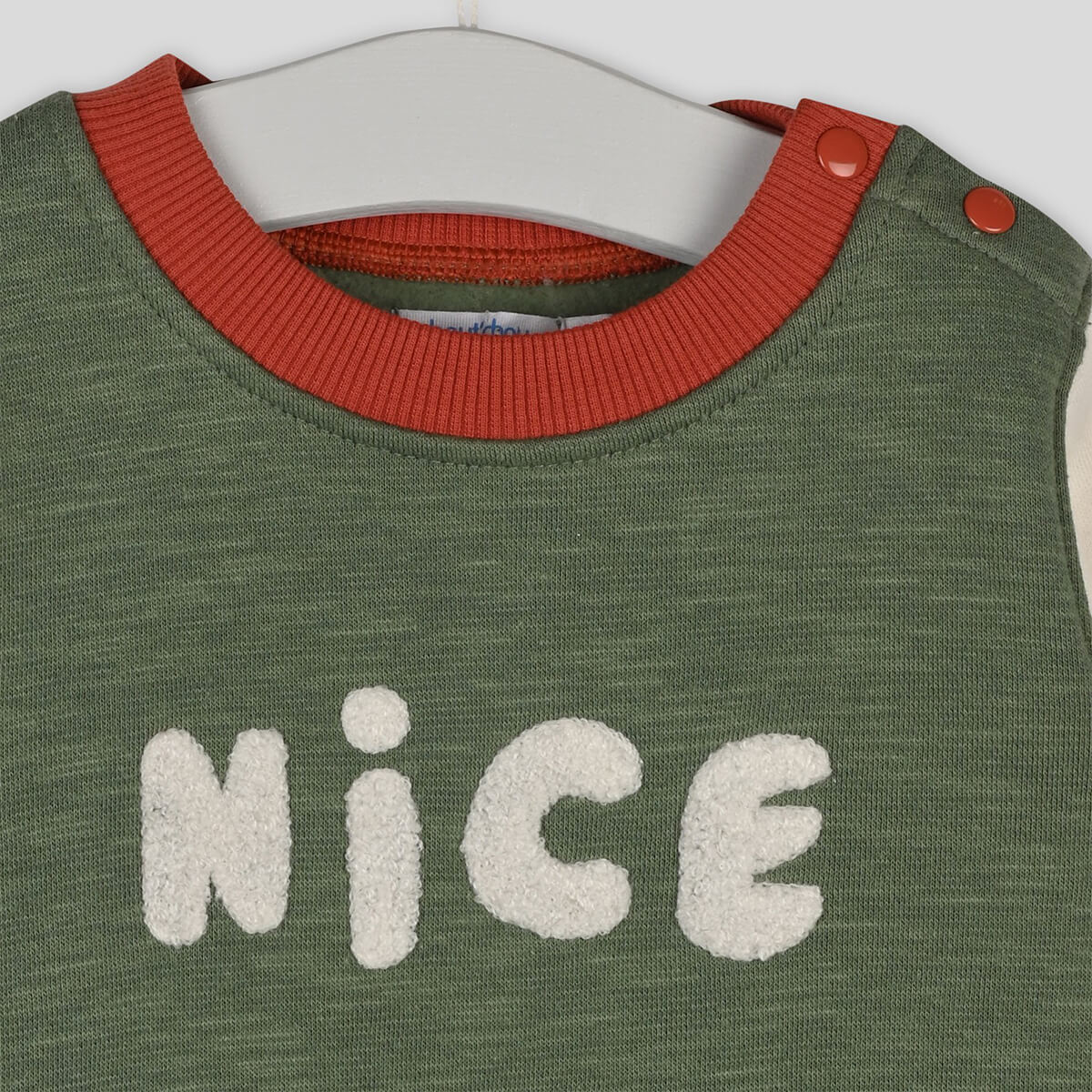 Sweatshirt with printed motif and 100% organic cotton Round collar Long sleeves Partial snap closure on shoulders Ribbed finish