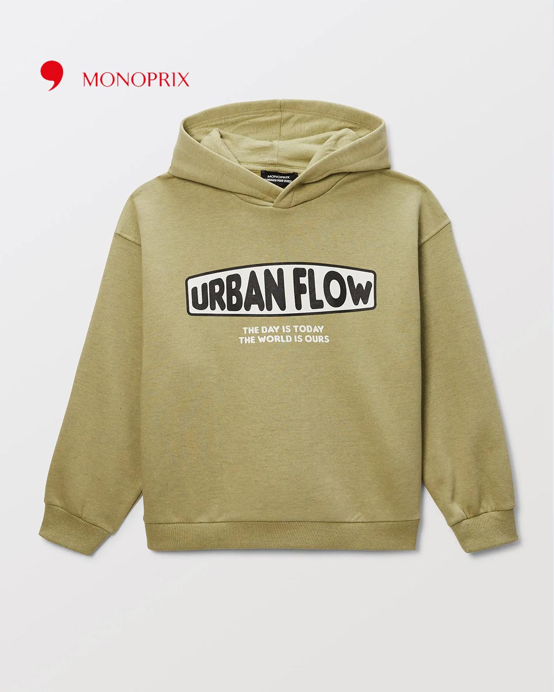 Fleece sweatshirt with flocked front. Relaxed