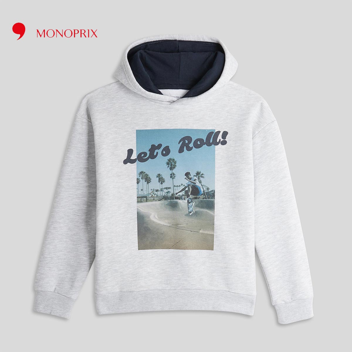 MONOPRIX HEATHER GREY LET'S ROLL PRINTED HOODIE