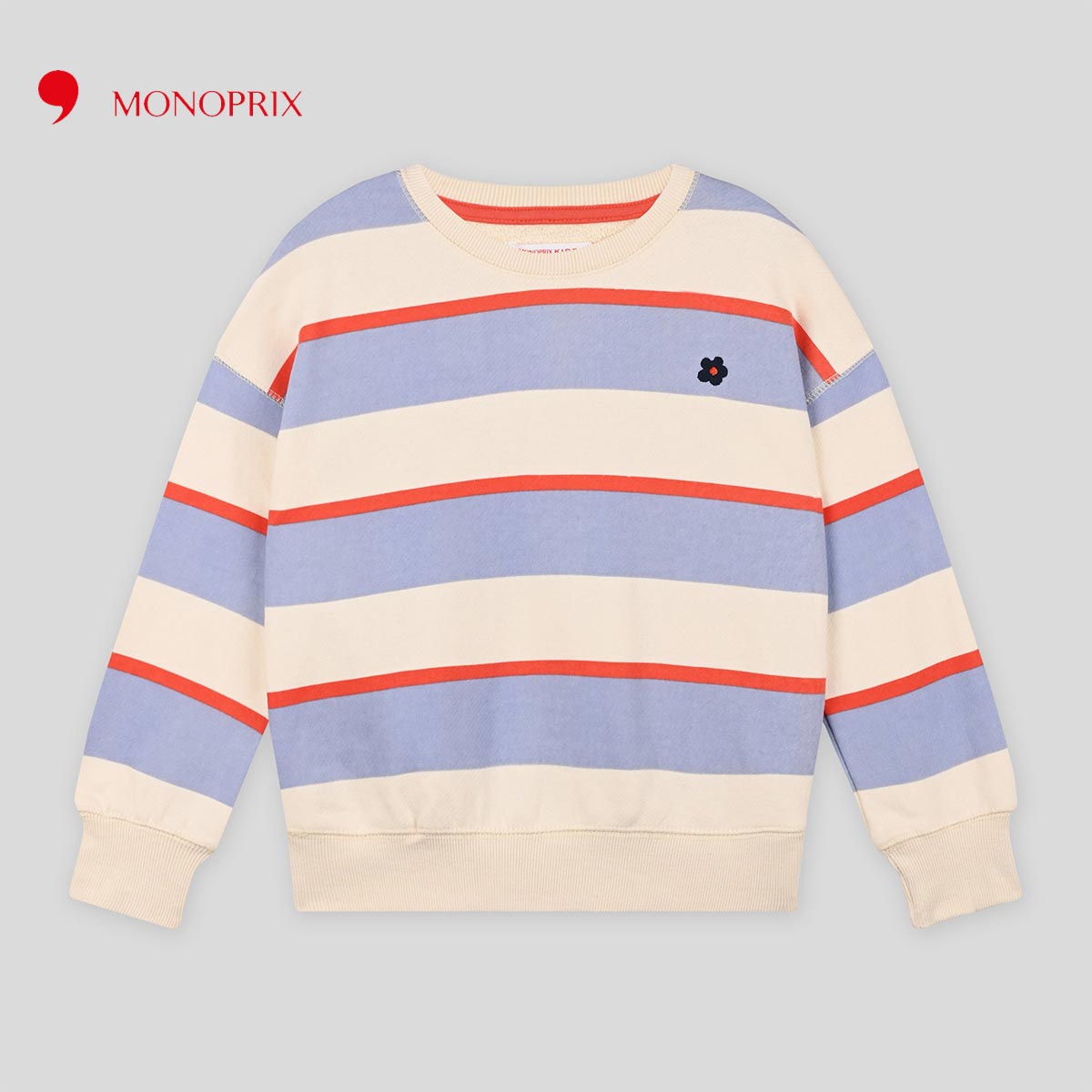 Sweatshirt Long sleeves Stripes Flower pattern ORGANIC cotton Made in Pakistan T31650120   MONOPRIX  SWEATSHIRT SIZE: 3 YEARS 4 YEARS 5 YEARS 6 YEARS 8 YEARS 10 YEARS 12 YEARS...