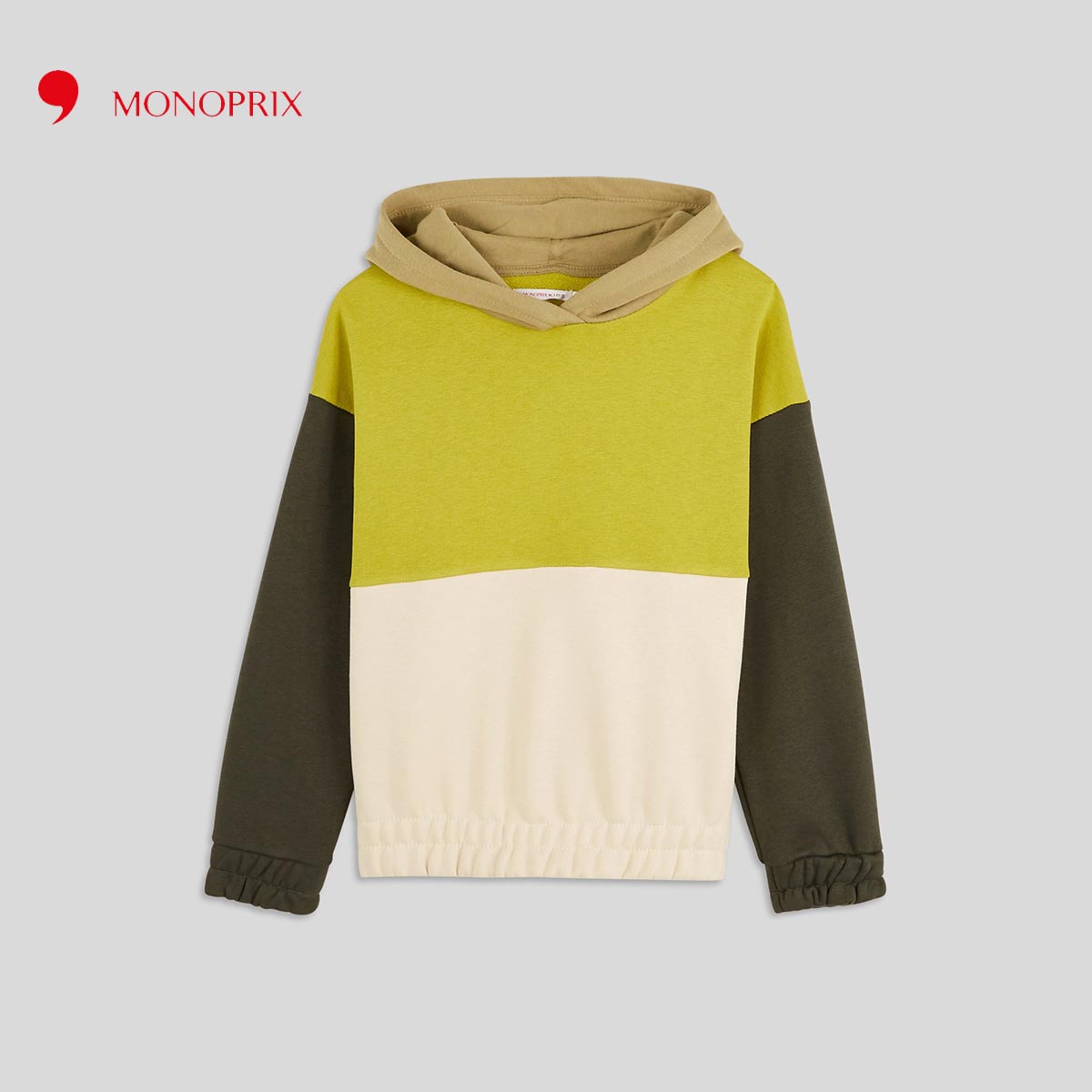 - Colorblock hooded sweatshirt made with organic cotton Jersey-lined hood Fleece knit with brushed backing Elasticated hem and cuffs ORGANIC: the cotton flower used to make this item is grown according to the principles of organic farming, which prohibits the use of pesticides and synthetic fertilizers. OEKO-TEX: international label which guarantees the absence of substances undesirable for health and the skin. Model number: T31660113