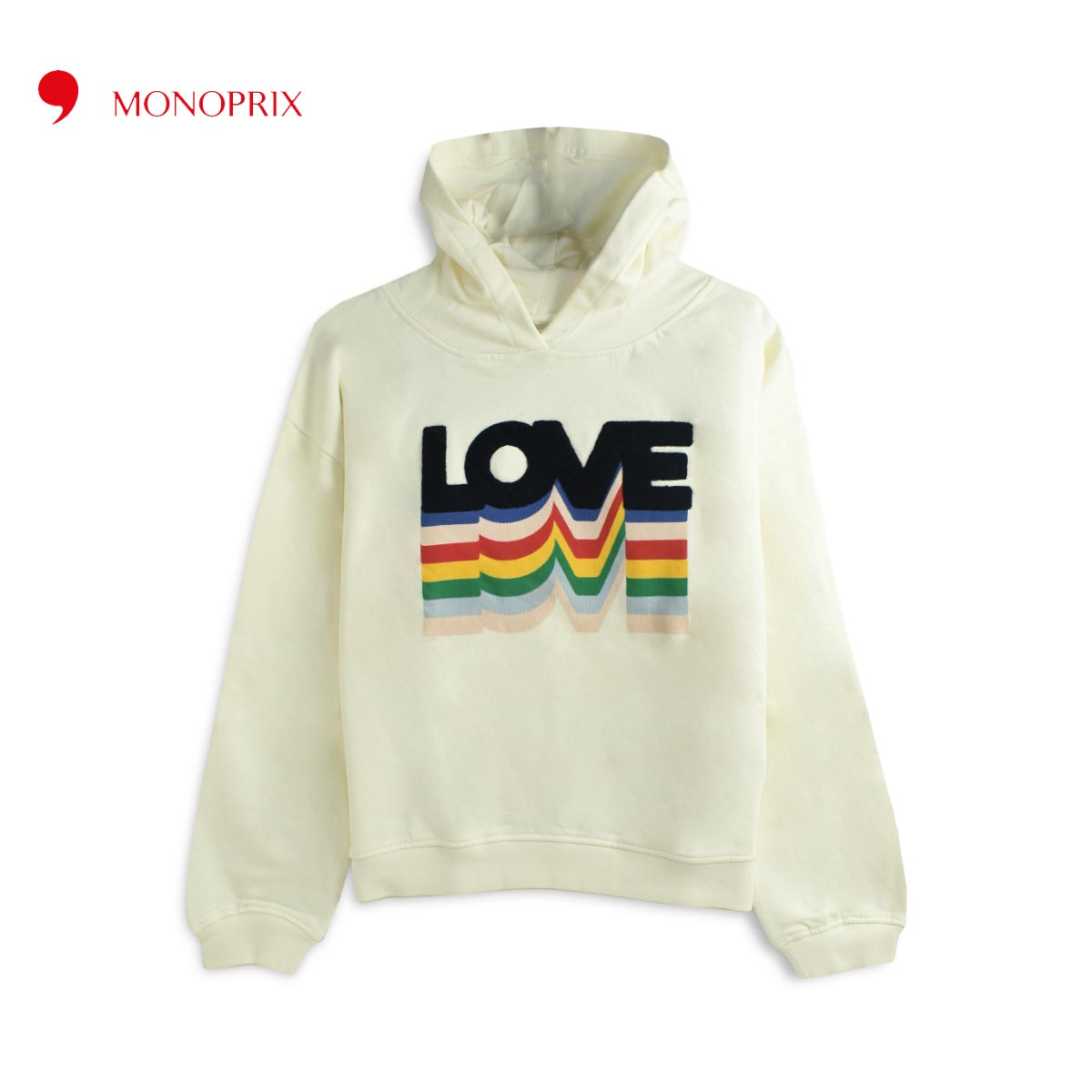 MONOPRIX OFF WHITE LOVE EMBOSSED HOODIE