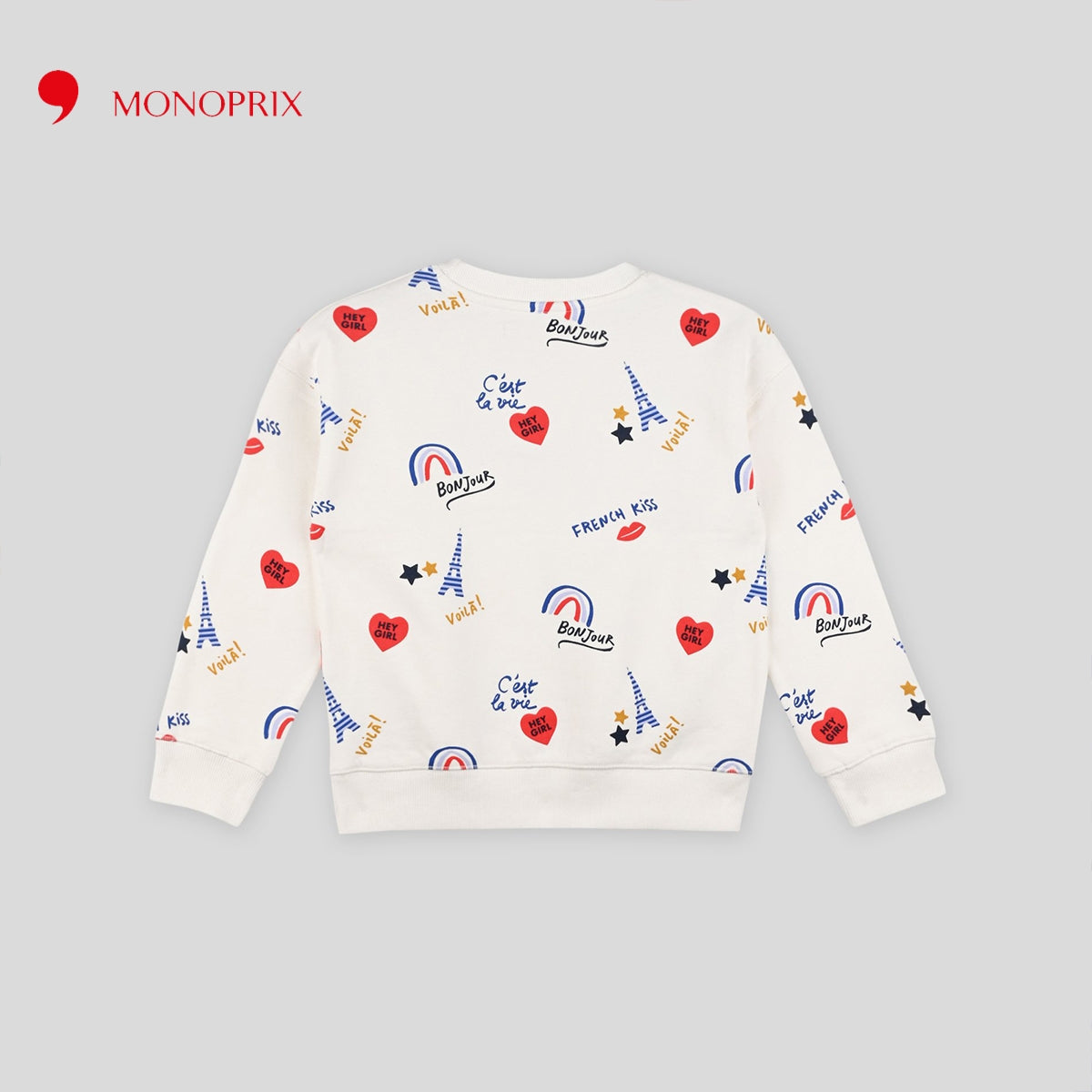 Paris themed printed sweatshirt Round collar Long sleeves fleece knit Loop interior Ribbed finish Model Number: H31650518   MONOPRIX  SWEATSHIRT SIZE: 3 YEARS 4 YEARS 5 YEARS 6 YEARS 8...