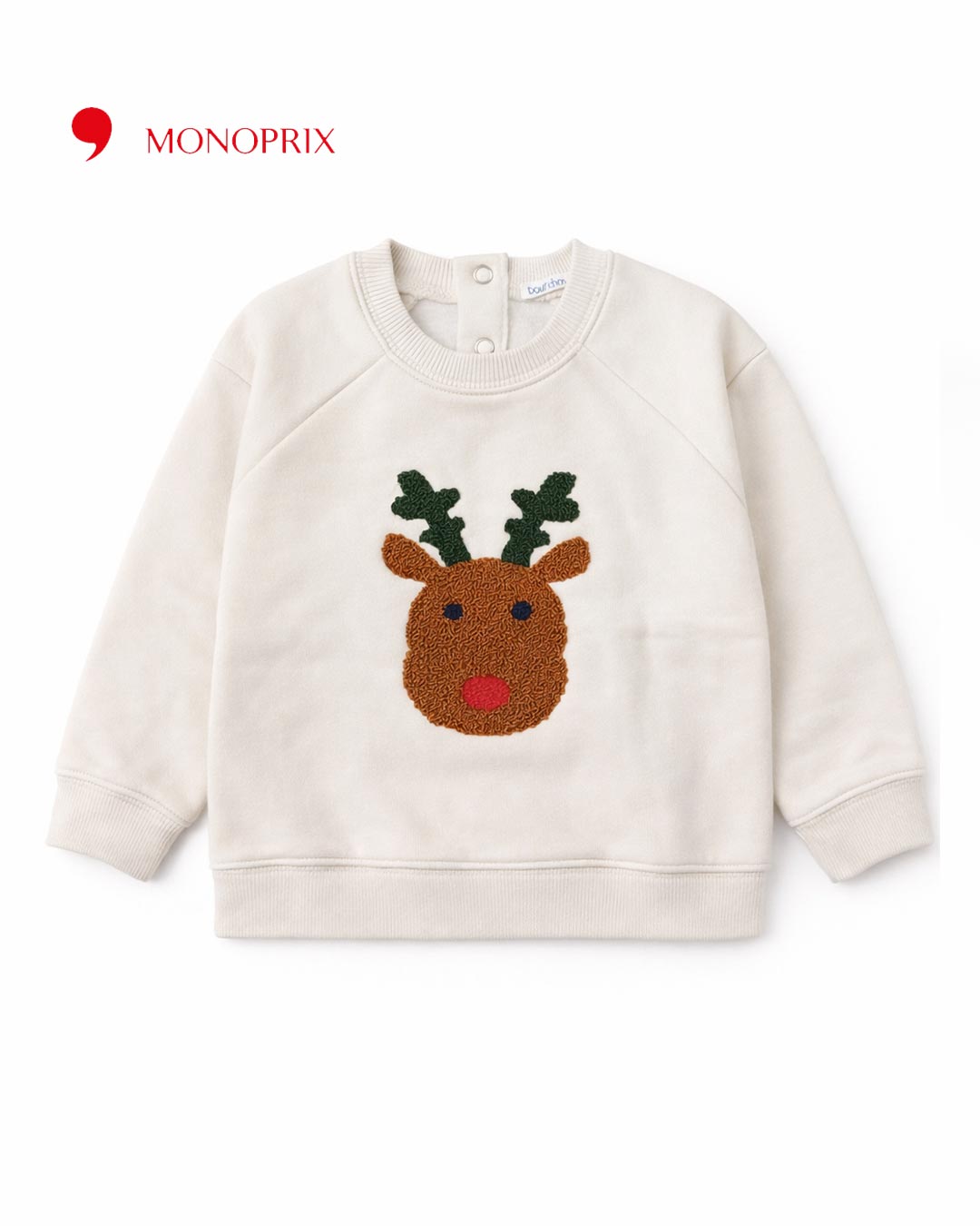 Add a festive touch to your little one’s winter wardrobe with this adorable sweatshirt, designed in a soft off-white shade. The front features a cute embroidered reindeer face with textured detailing, bringing a playful and cozy feel that’s perfect for the season.