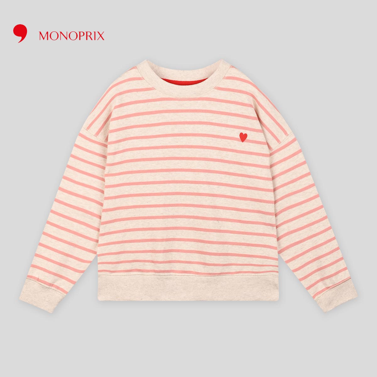 Organic and OEKOTEX certified embroidered heart striped sweatshirt   MONOPRIX  SWEATSHIRT SIZE: 3 YEARS 4 YEARS 5 YEARS 6 YEARS 8 YEARS 10 YEARS 12 YEARS 14 YEARS LENGTH 15"...