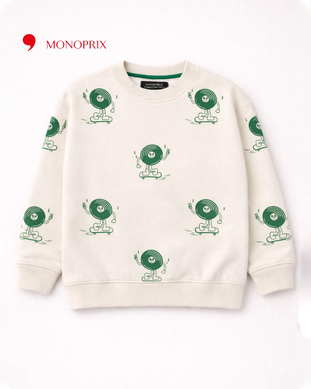 Bring fun and comfort to your child’s everyday wardrobe with this playful sweatshirt. Designed in a soft off-white shade, it features an all-over cute character print that adds a cheerful and lively touch kids will love.