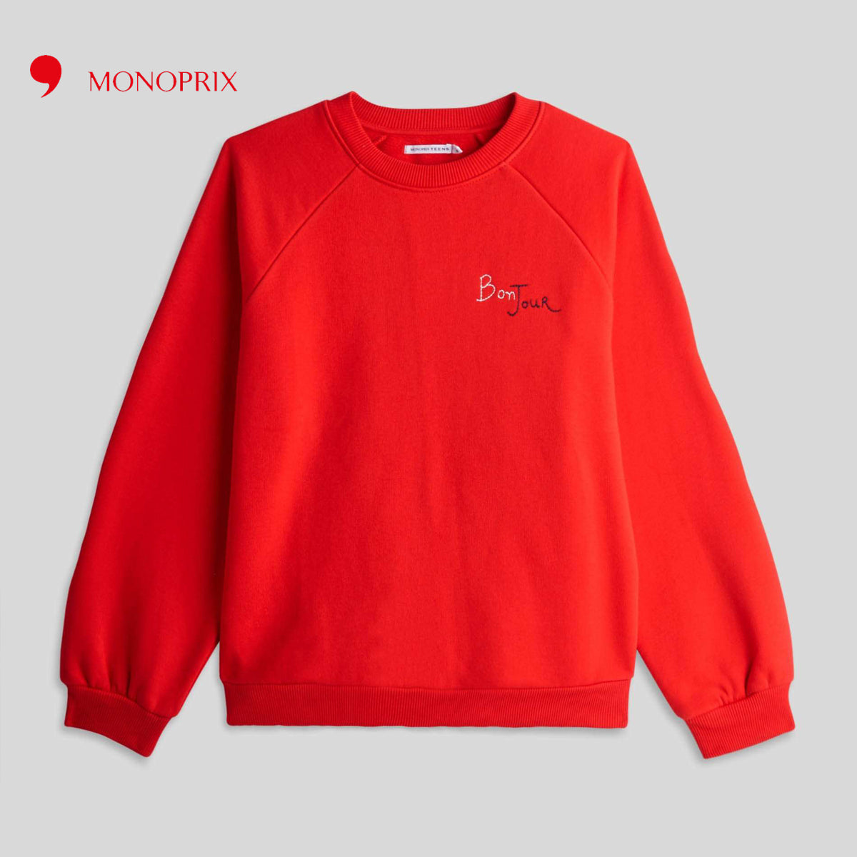 MONOPRIX TEENS RED BONJOUR EMBROIDERED SWEATSHIRT