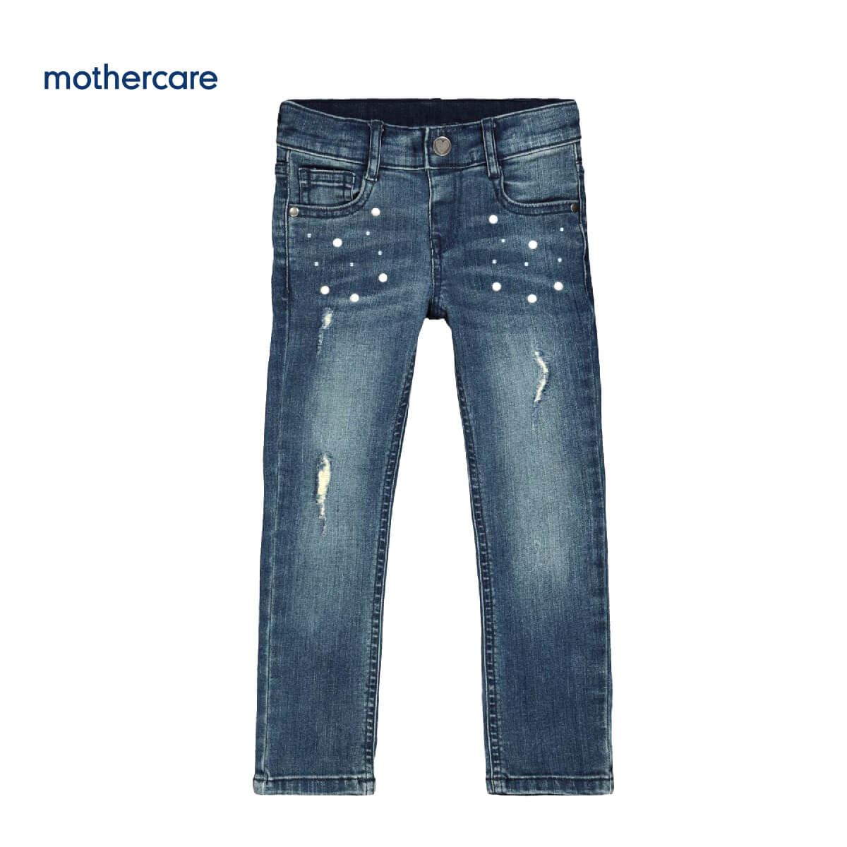 MOTHERCARE BLUE GIRLS DENIM JEANS WITH PEARLS