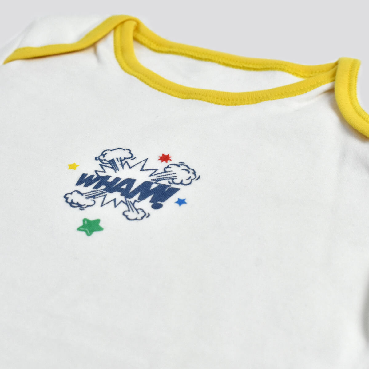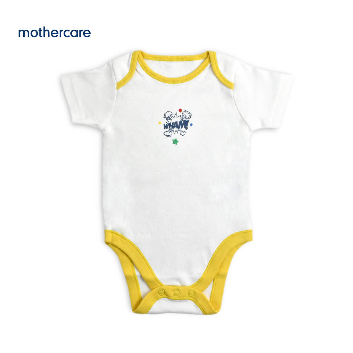 MOTHERCARE WHITE YELLOW WHAM PRINTED BODYSUIT