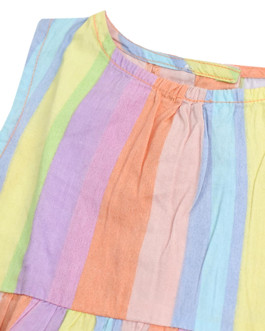 Dress up your little princess in this cute striped sleeveless top featuring a back button opening. The top comes with contrasting denim short