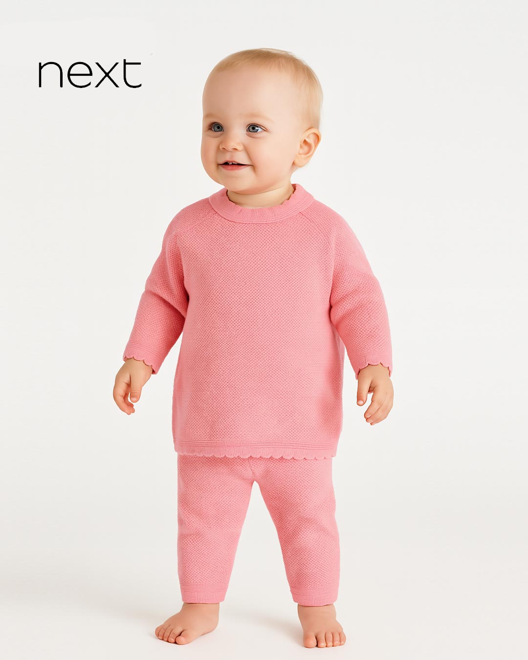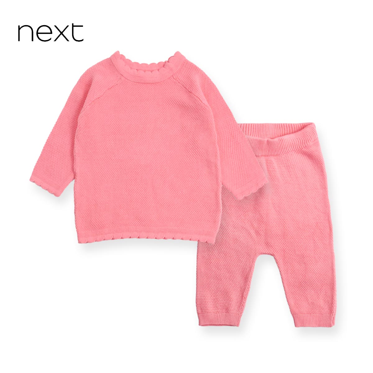 NEXT BABY PINK RIBBED TOP WITH TROUSER SET
