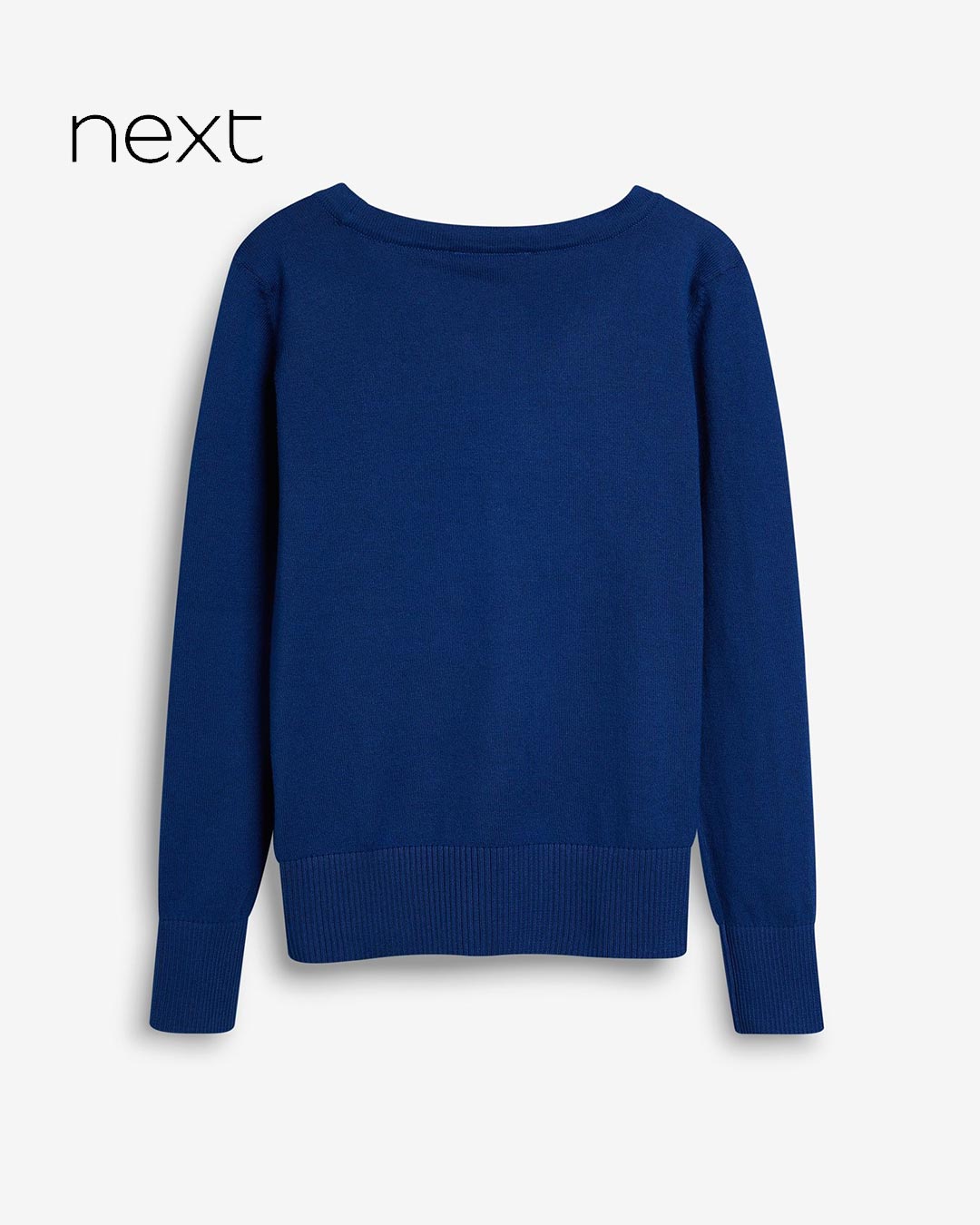 Layering perfection, this blue V-neck cardigan is made from a rich-cotton blend for ultimate comfort and breathability throughout the hectic school day – an all-year-round staple.