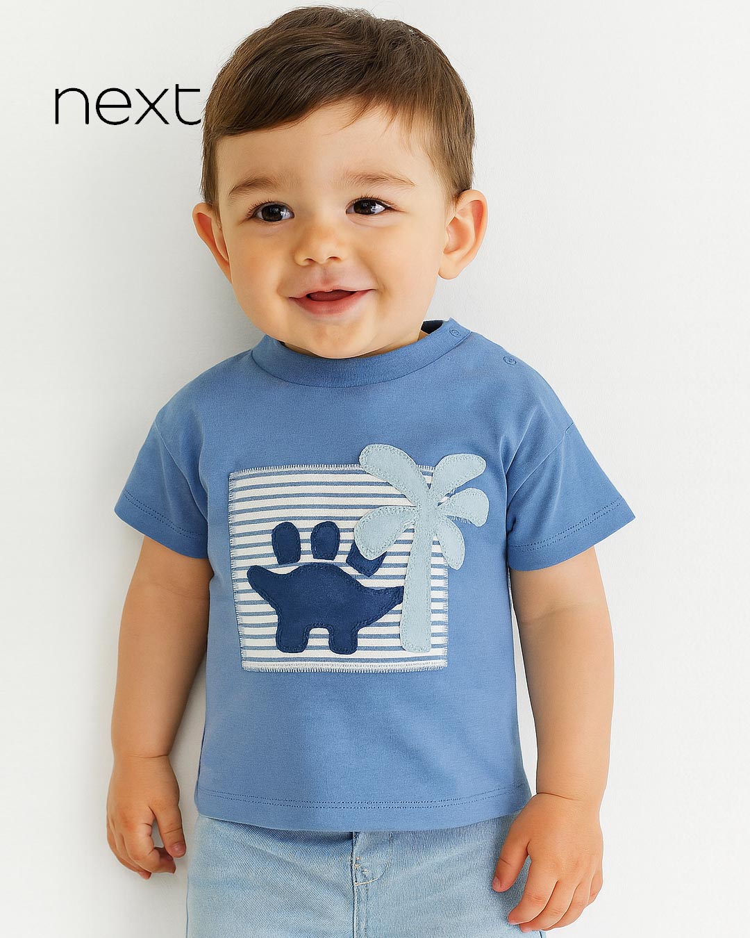 Fill their wardrobe with this dinosaur print short sleeve top. Featuring appliques made with supersoft cotton fabric for extra comfort.