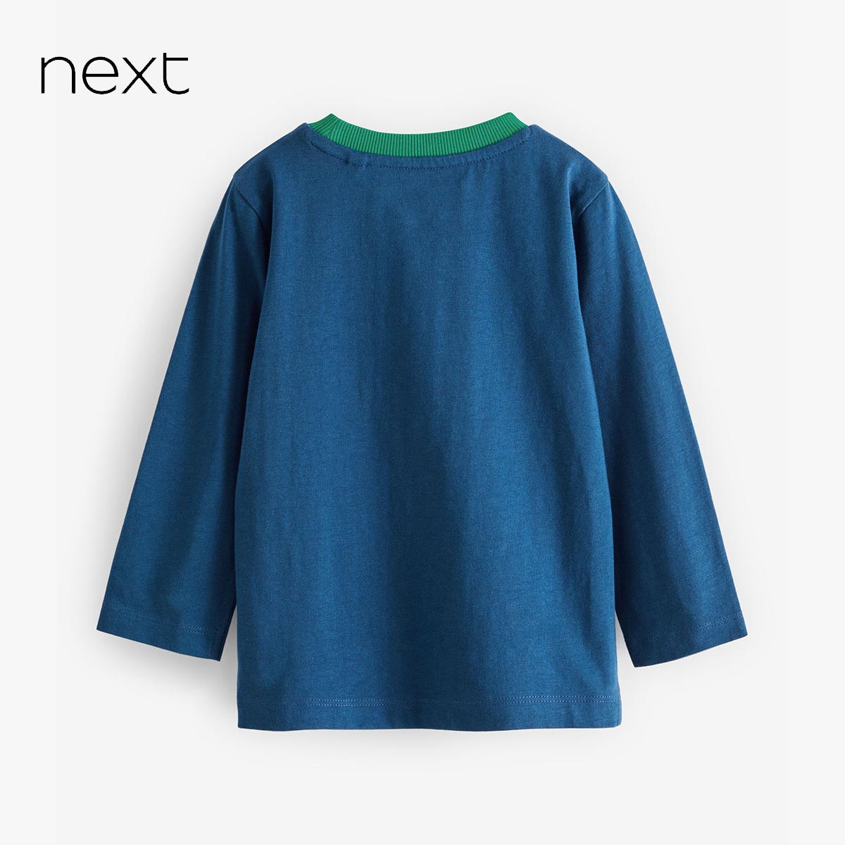 NEXT BLUE TEXTURED PRINT LONG SLEEVE DINO T-SHIRT