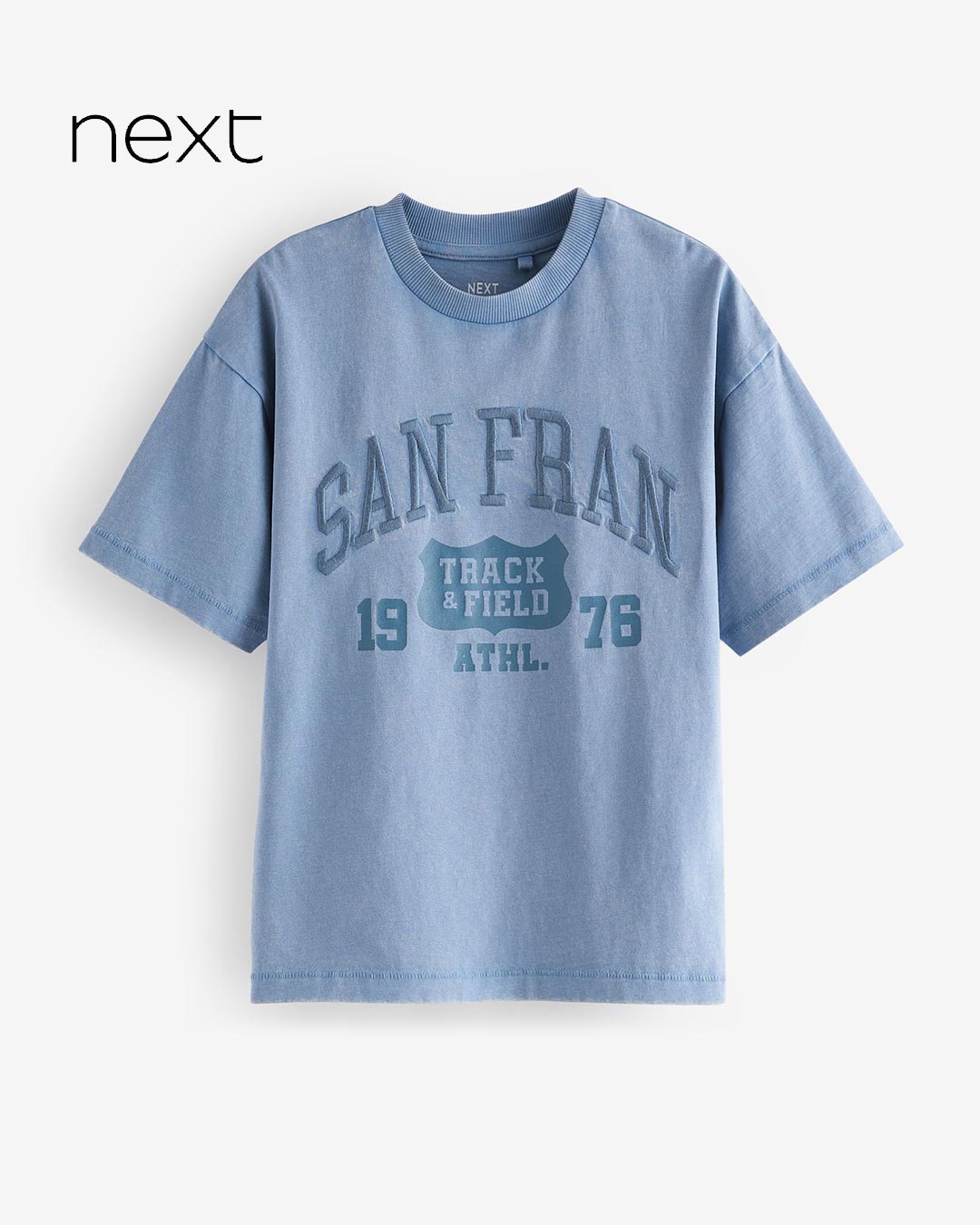NEXT BLUE VARSITY WASHET COTTON T-SHIRT