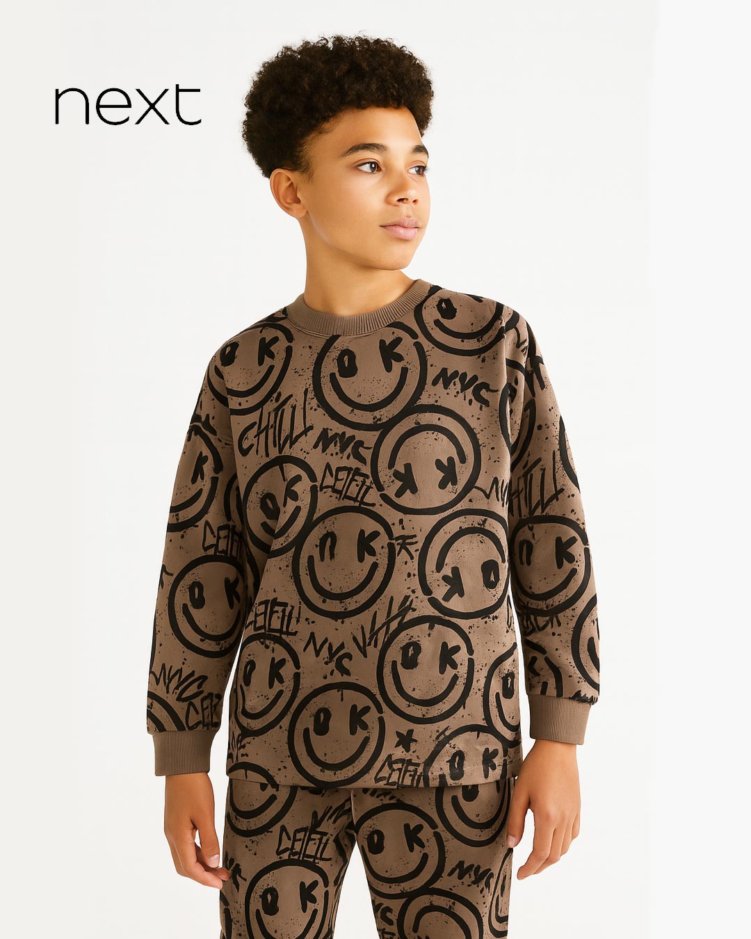 NEXT BROWN PRINTED LONG SLEEVE T-SHIRT AND TROUSER SET
