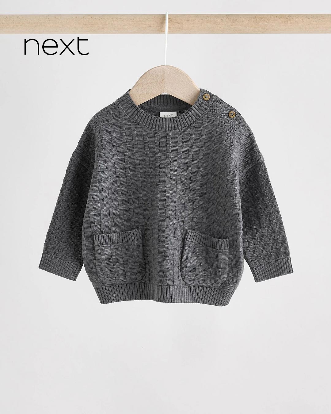 NEXT CHARCOAL BABY OVERSIZED TEXTURED KNITTED COTTON JUMPER