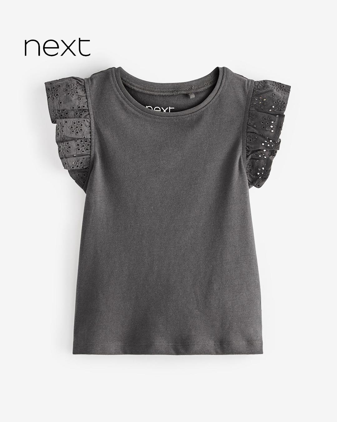 NEXT CHARCOAL FRILL DETAILED SLEEVE VEST TOP
