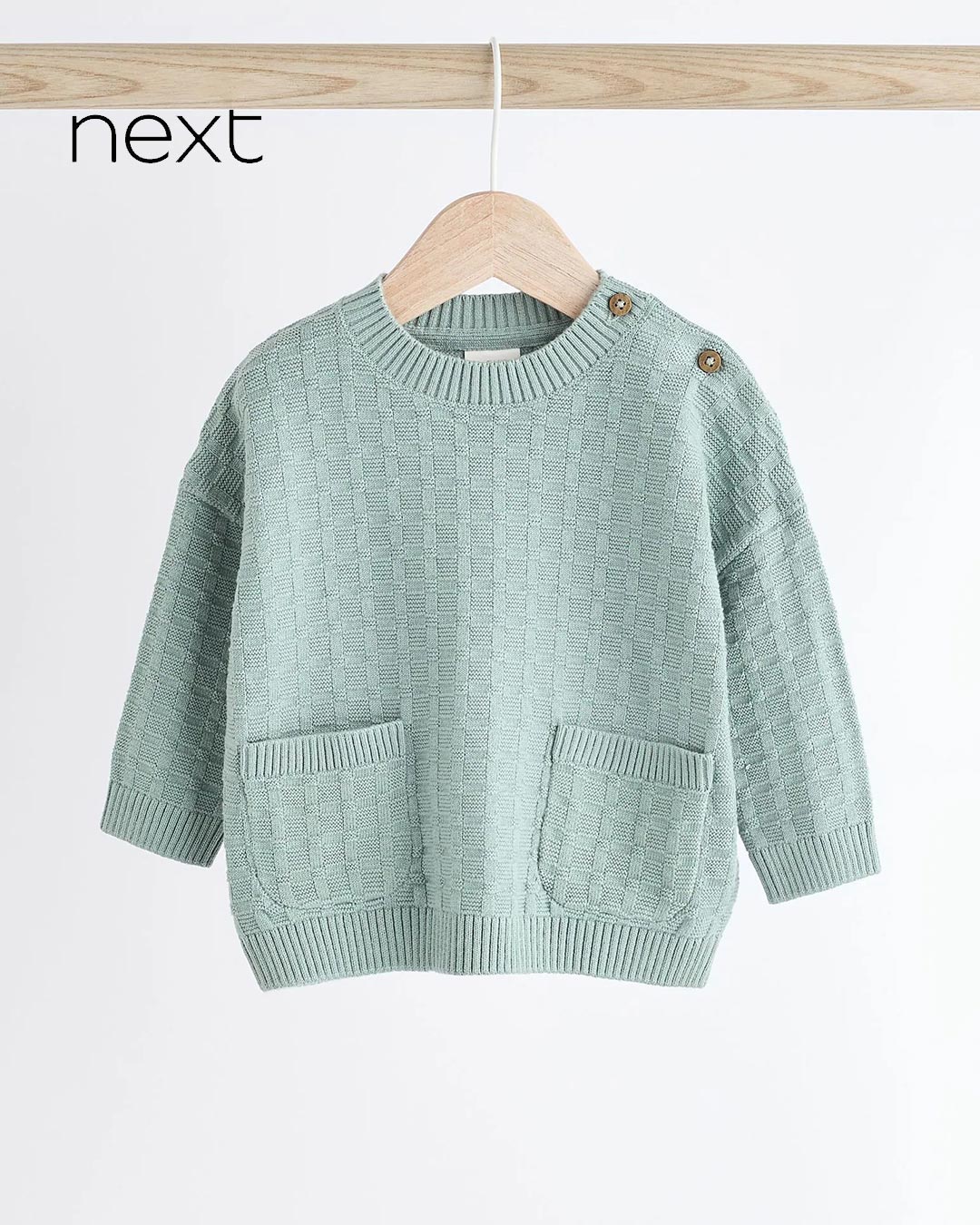 An easy addition to your little one's wardrobe, this charcoal grey is designed in a lovely textured knit. Featuring a crew neck, ribbed hem top with long sleeves, patch pockets and button fastenings to the shoulder