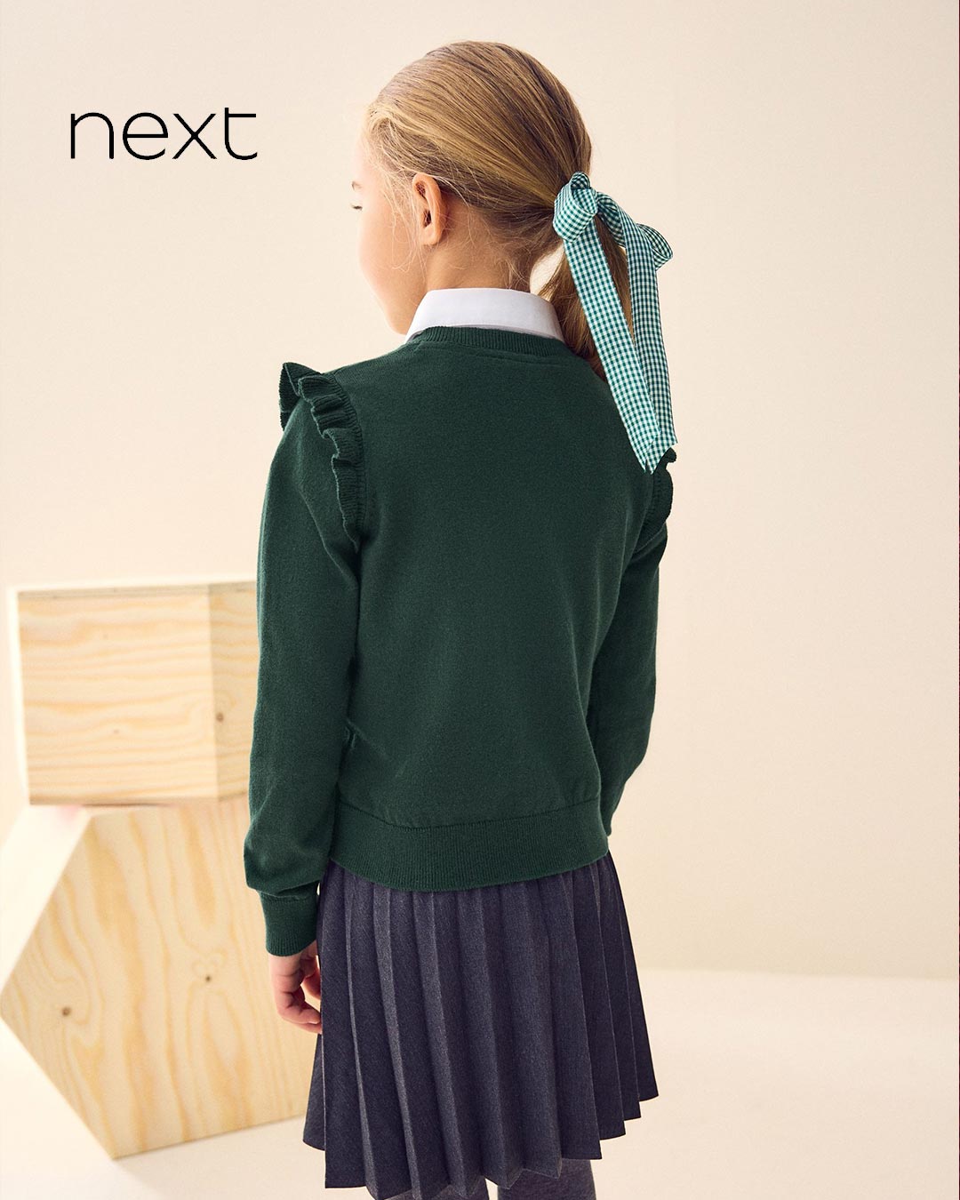 This round neck style features frill shoulder detailing for A* classroom style. The perfect layer to add to their school wardrobe, made in a cotton-rich blend for comfort and breathability whatever the school day throws their way.