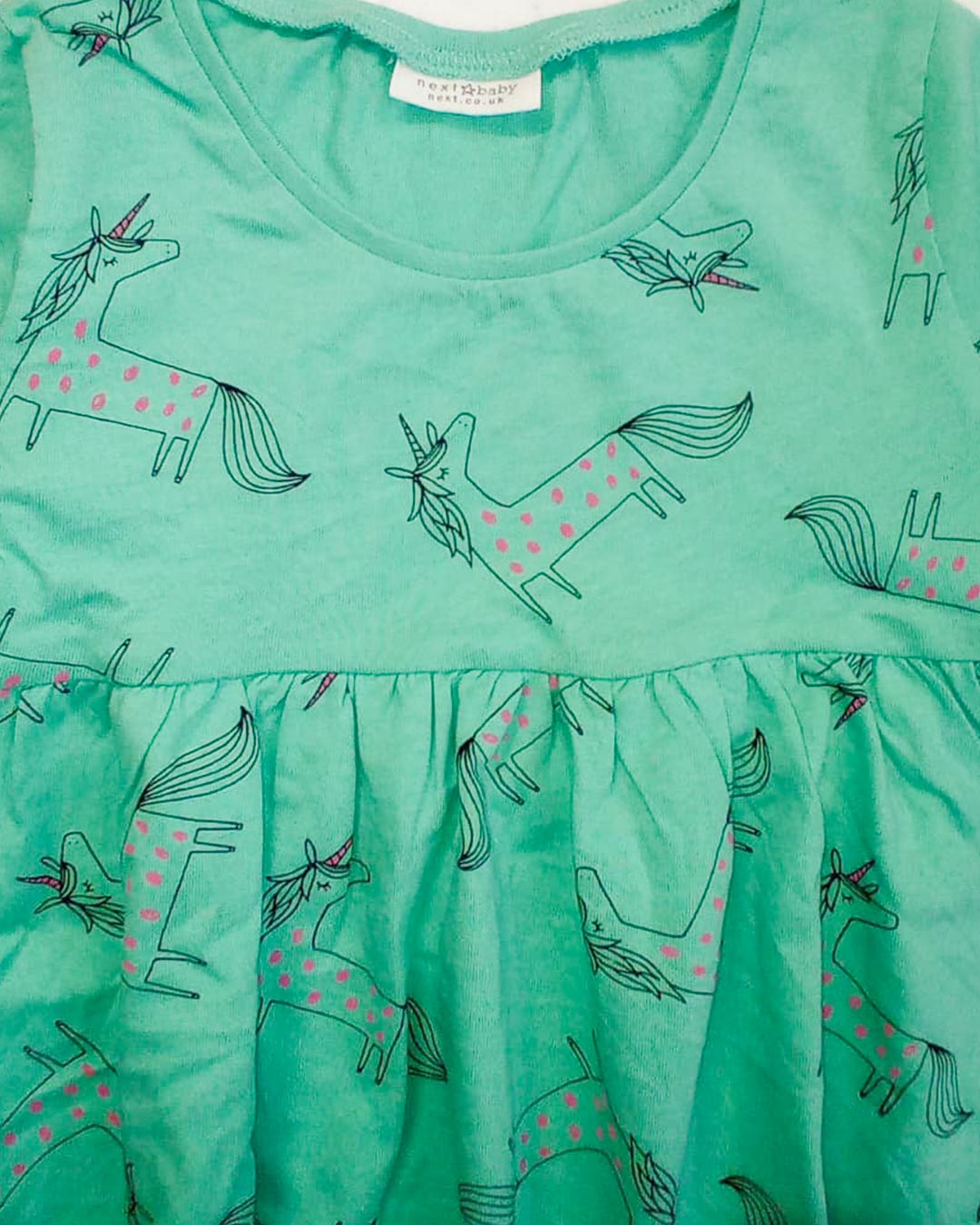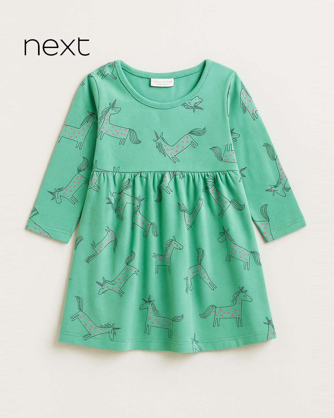 NEXT GREEN UNICORN PRINTED LONG SLEEVE DRESS