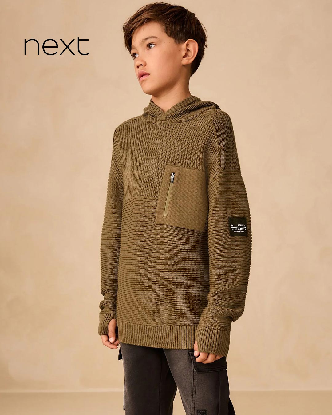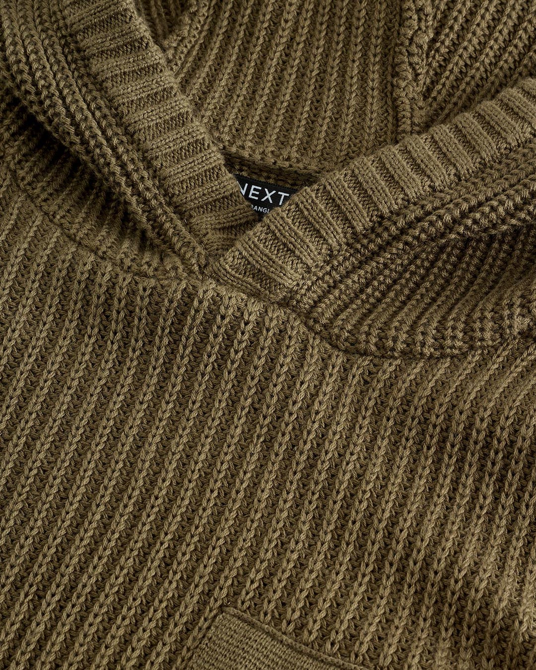 NEXT KHAKI GREEN UTILITY KNITTED HOODED JUMPER