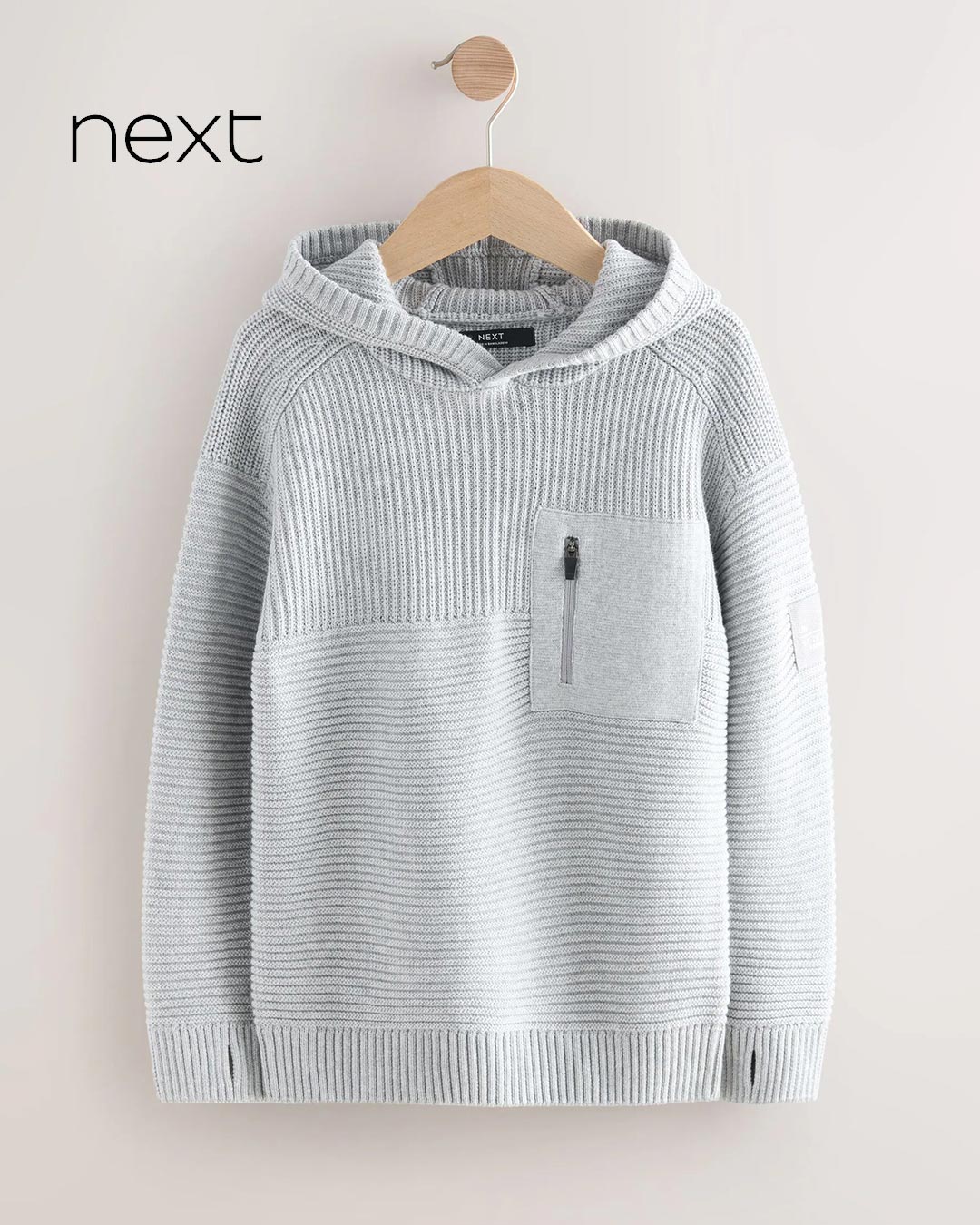 Stay warm and on-trend with this stylish utility knitted hoodie. The soft, knitted fabric and a subtle ribbed design provide a comfortable feel, while the pocket detail on the chest adds a modern touch. With a hood and a versatile colour, it's a perfect layering piece for a smart day at school or a casual day out.