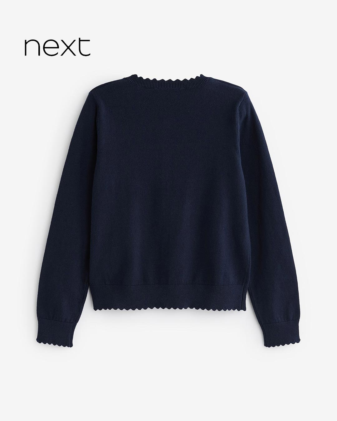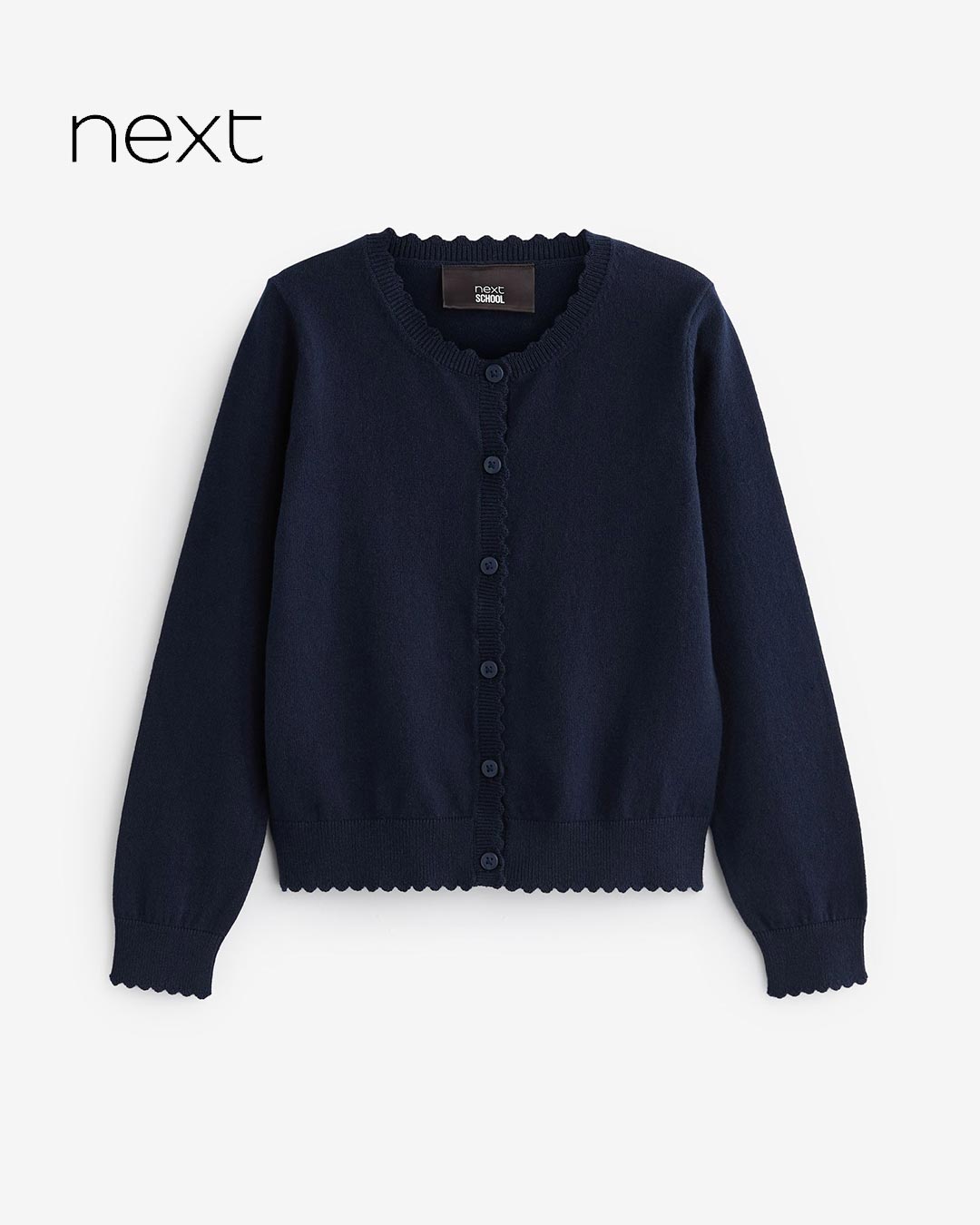 NEXT NAVY BLUE RICH SCALLOPED EDGE SCHOOL CARDIGAN -12A