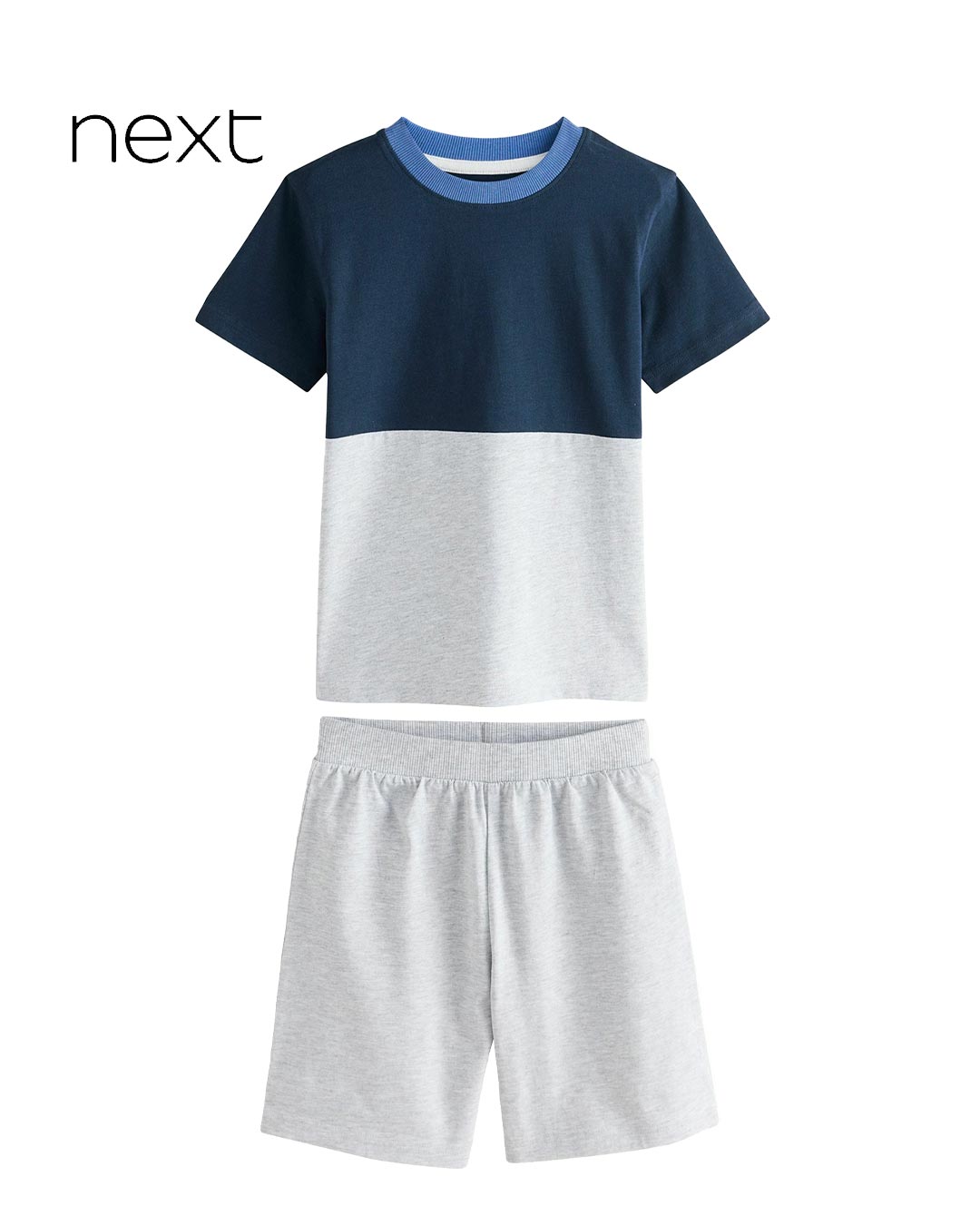 NEXT Boys' Colorblock T-Shirt & Shorts Set – Navy & Grey Keep your little one looking cool and feeling comfortable in this sporty colorblock T-shirt and shorts set from NEXT....