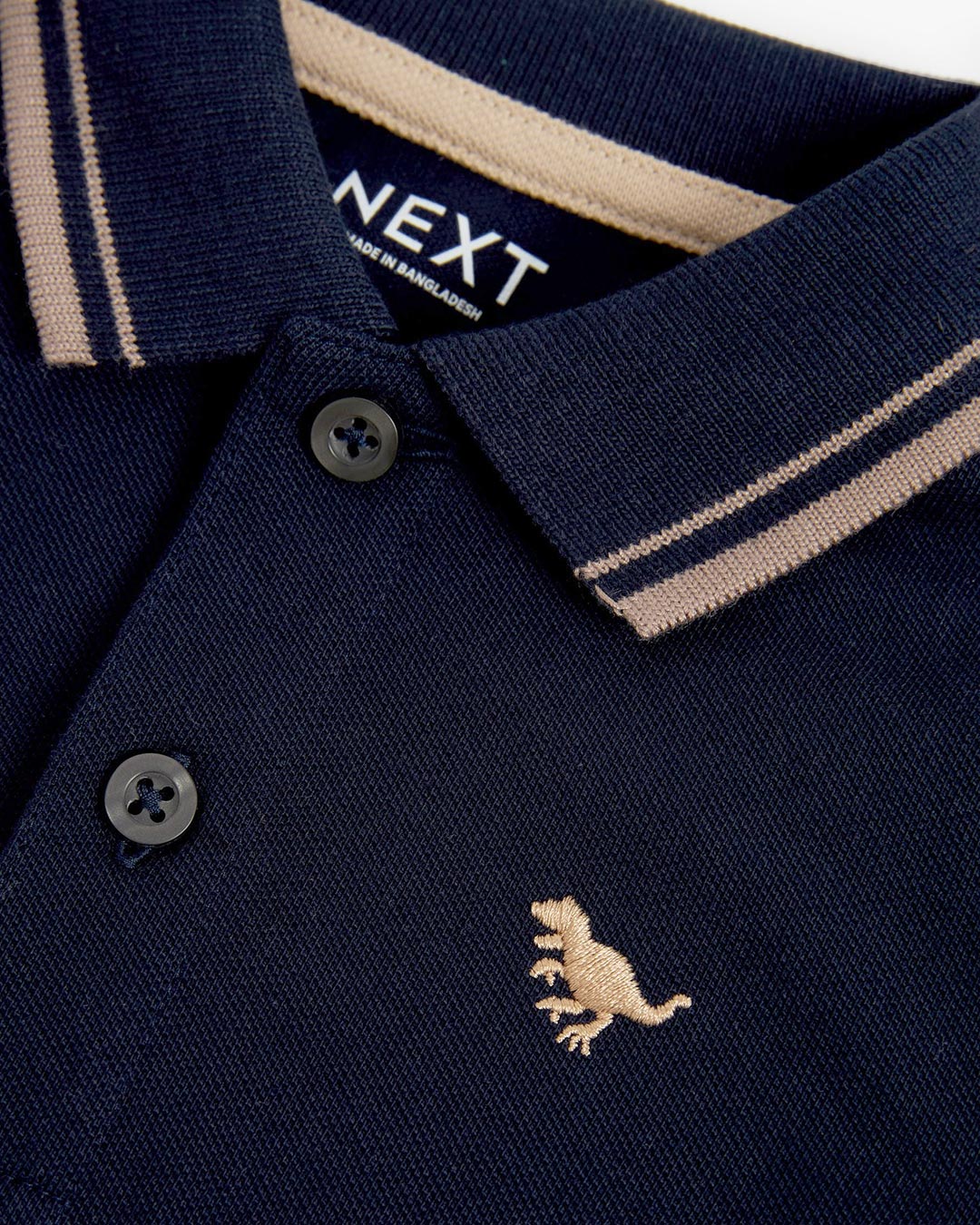NEXT NAVY TIPPED COTTON POLO T-SHIRT