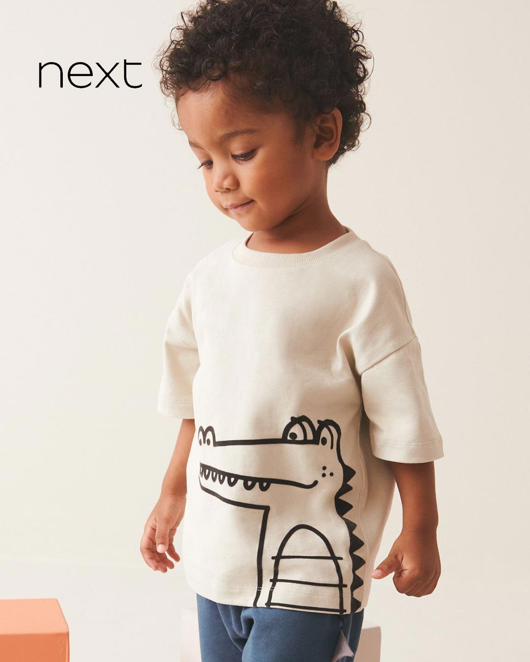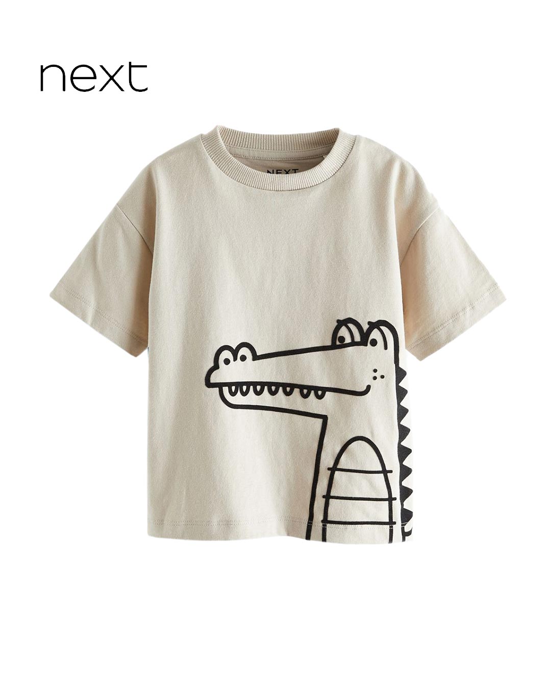 Add a touch of whimsical charm to their outfit with this cream-colored graphic t-shirt. Featuring a bold, hand-drawn style crocodile illustration, this tee offers a modern, boxy silhouette for a relaxed and trendy look.