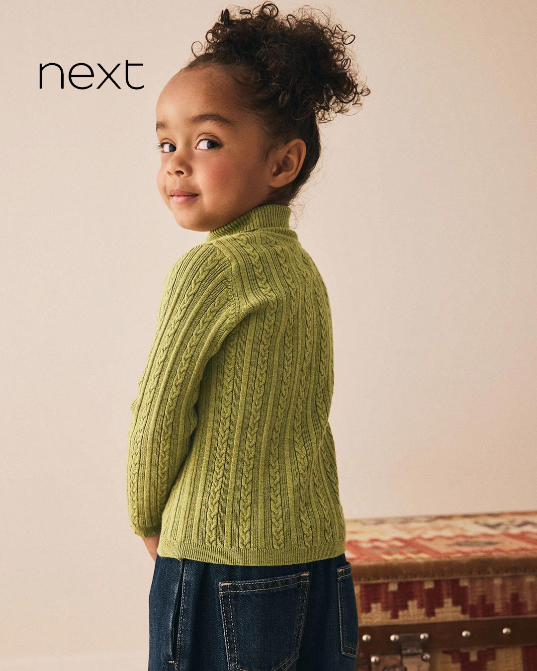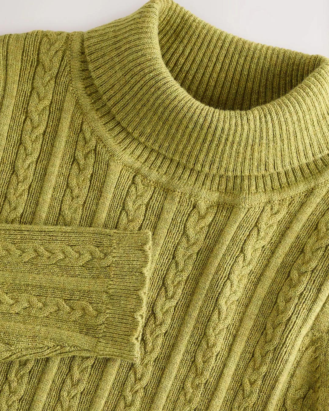 NEXT OLIVE GREEN CABLE KNIT HIGH NECK JUMPER