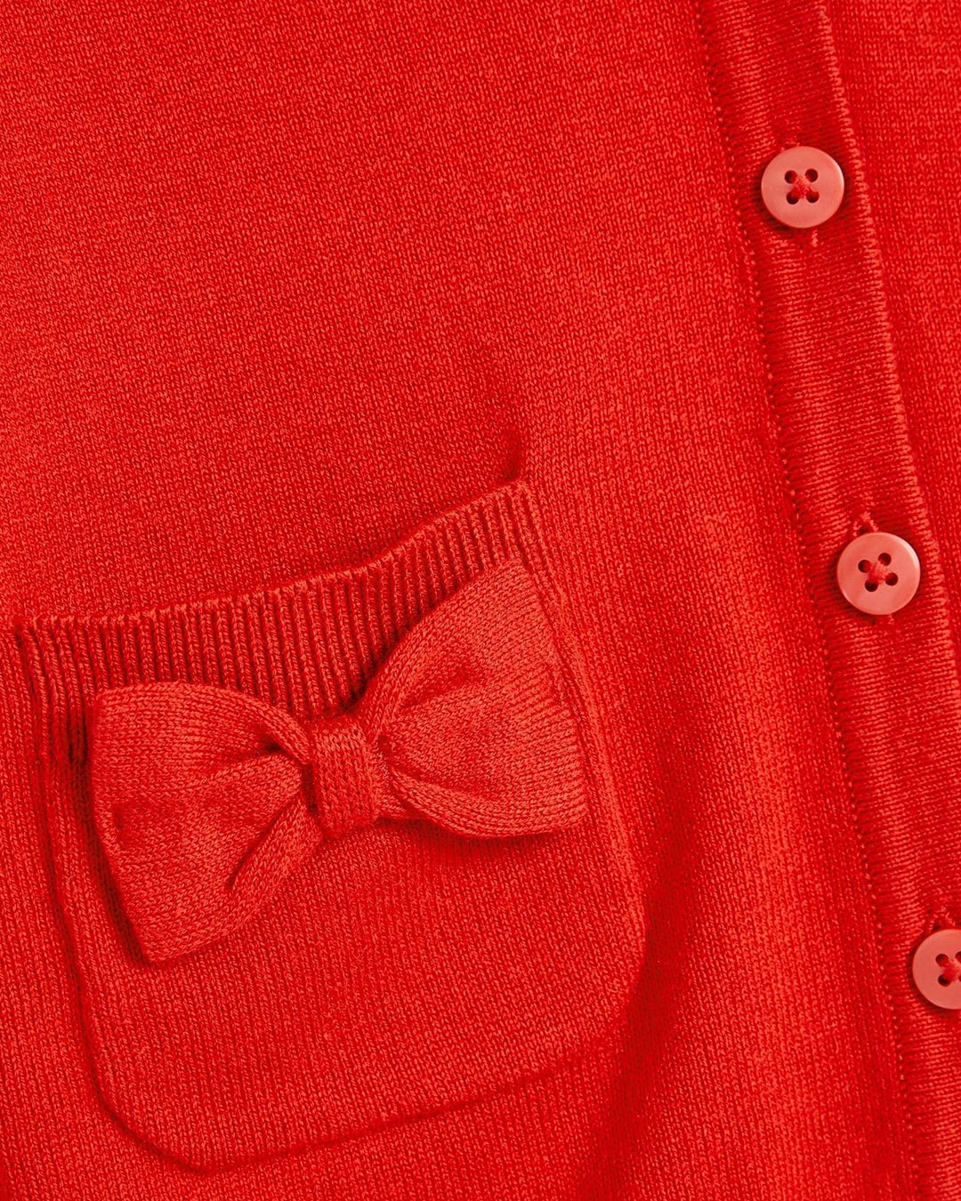 Add this pretty red cardigan to her term time wardrobe for a look she is sure to love. We've added bow detail patch pockets to the front which provide a cute touch to our classic V-neck, button-through style.
