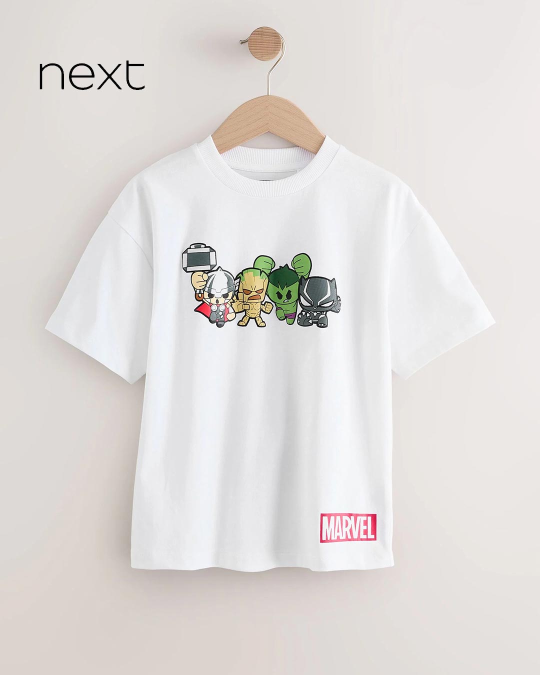 He'll love this pure cotton t-shirt, featuring all their favourite super Marvel heroes in embroidered badges across the front, finished with a ribbed crewneck collar and short sleeves.