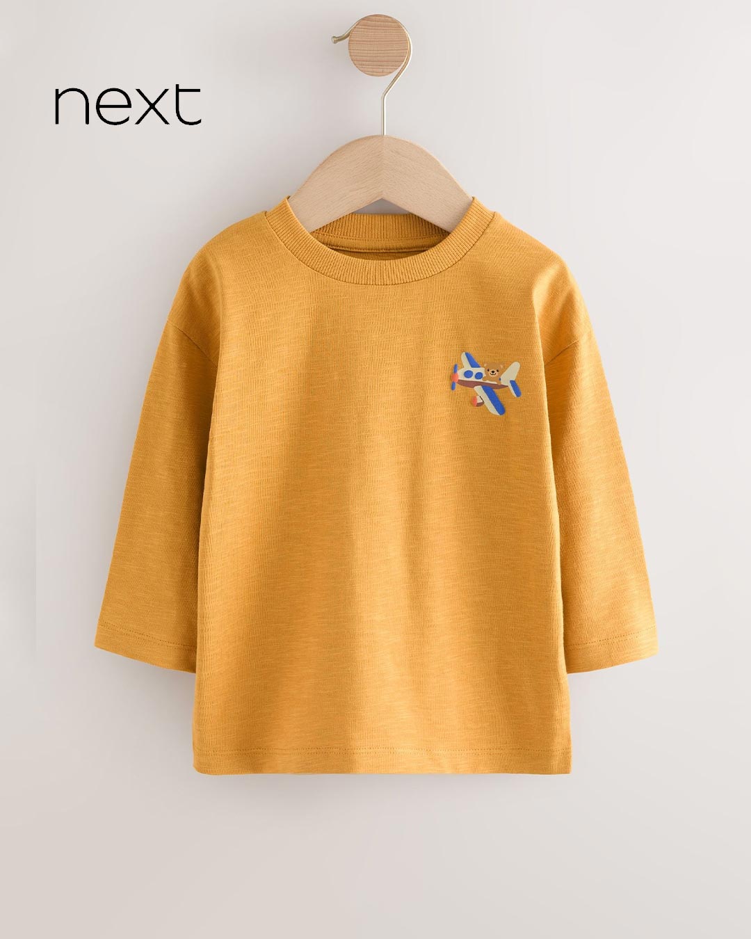 Brighten up your little one’s everyday wardrobe with this cheerful long-sleeve T-shirt. Designed in a warm mustard yellow shade, it features a cute airplane embroidery on the chest, adding a playful touch that kids will love.