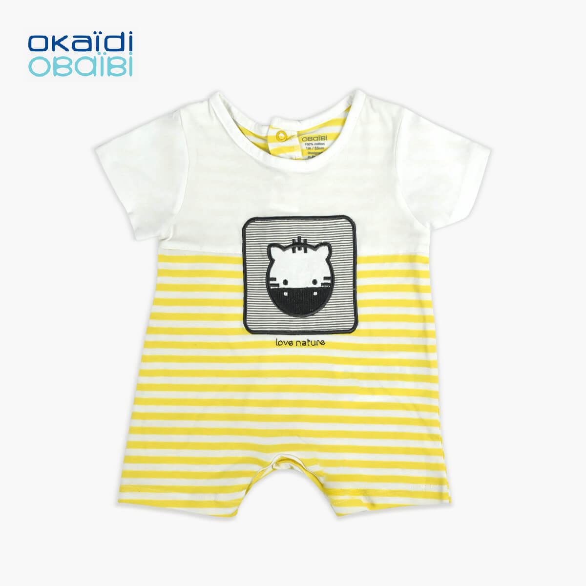 OBAIBI YELLOW STRIPED LOVE NATURE ROMPER