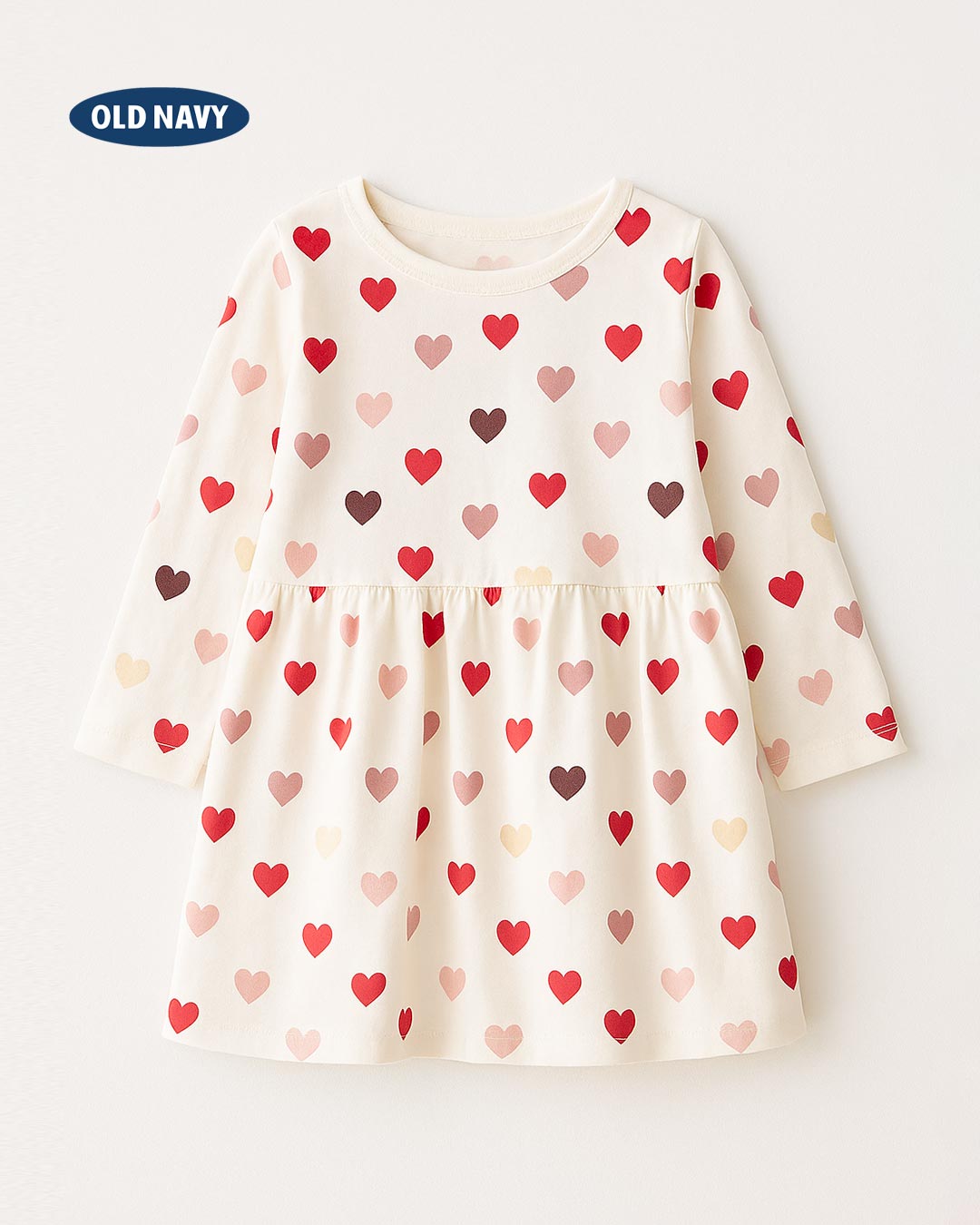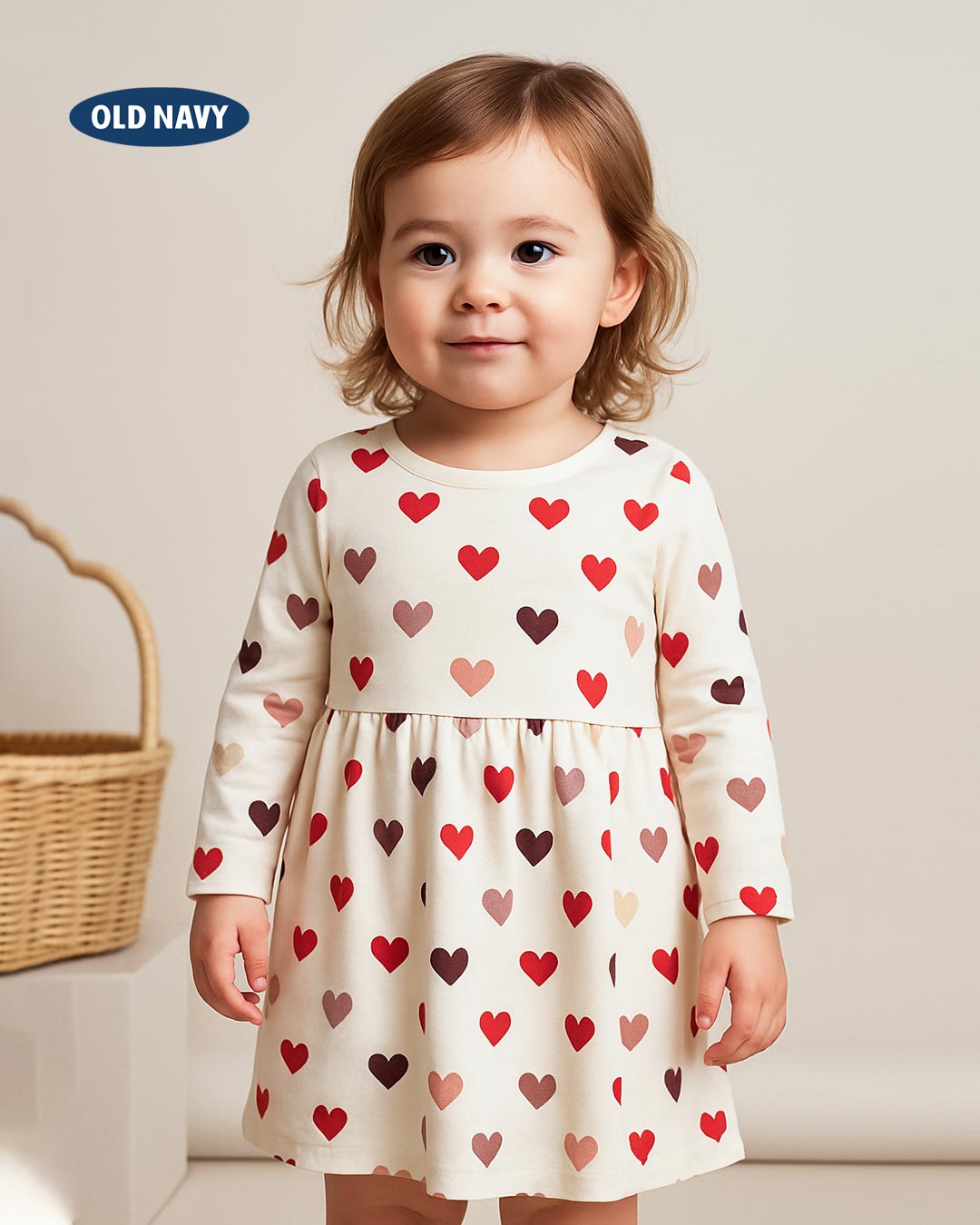 Baby Girls’ Heart Print Long Sleeve Frock – Soft Cotton Casual Dress