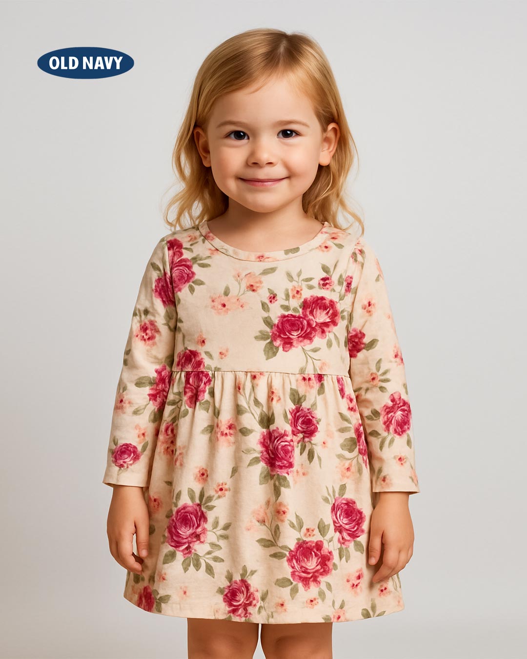 Let your little one bloom in charm with this adorable floral long-sleeve frock, designed for comfort and everyday sweetness. Crafted from soft, breathable cotton, this dress features a beautiful all-over floral print in shades of pink and green, giving it a fresh and elegant look. The gathered waist adds gentle volume, while the long sleeves make it perfect for all seasons.