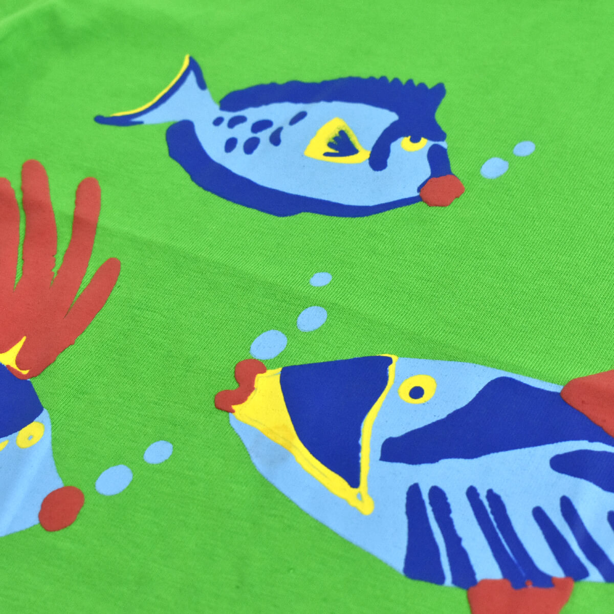Organic cotton fabric. Rounded neck. Short sleeve. Decorative design